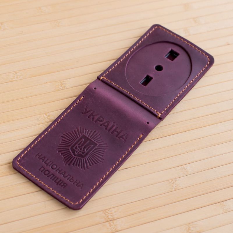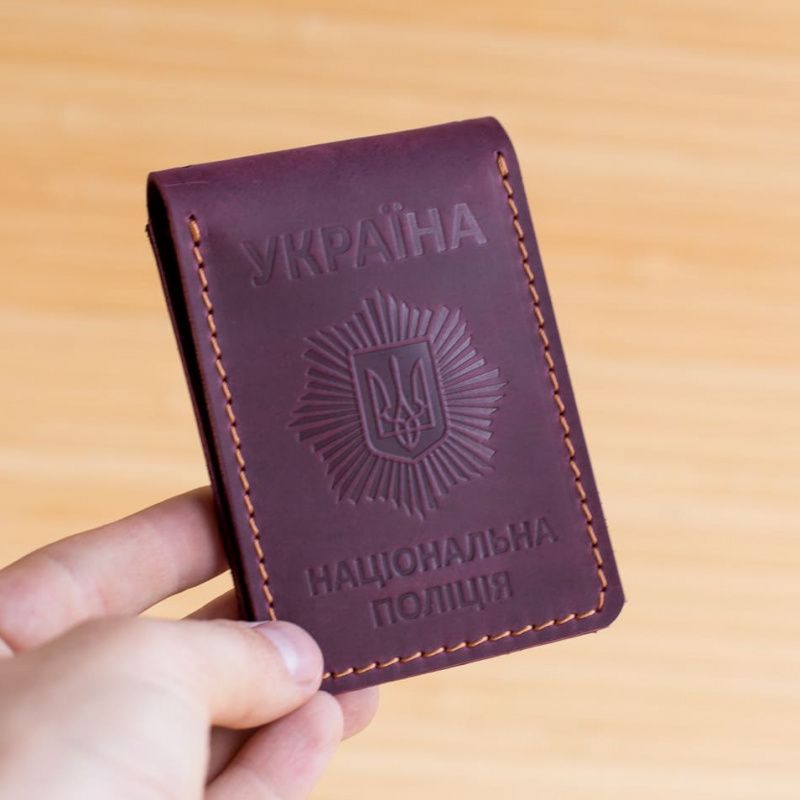 Обложка из кожи на удостоверение полиции с жетоном бордовая