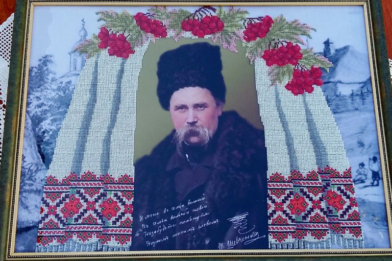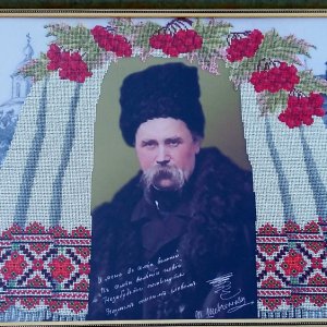 Портрет Т.Г. Шевченка, вишитий бісером, відрізняється своєю красою, яскравістю і особливим шармом. Сприяє осмисленню і сприйнятті світу. Розмір готової роботи 62 х 47 см, виконана на габардині чешським бісером.