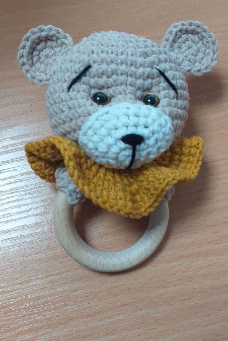 Деревянное колечко, детская пряжа, фиксированные крепления глазок? Можно выполнить по-вашему желанию и других зверей, любого цвета