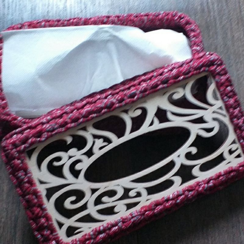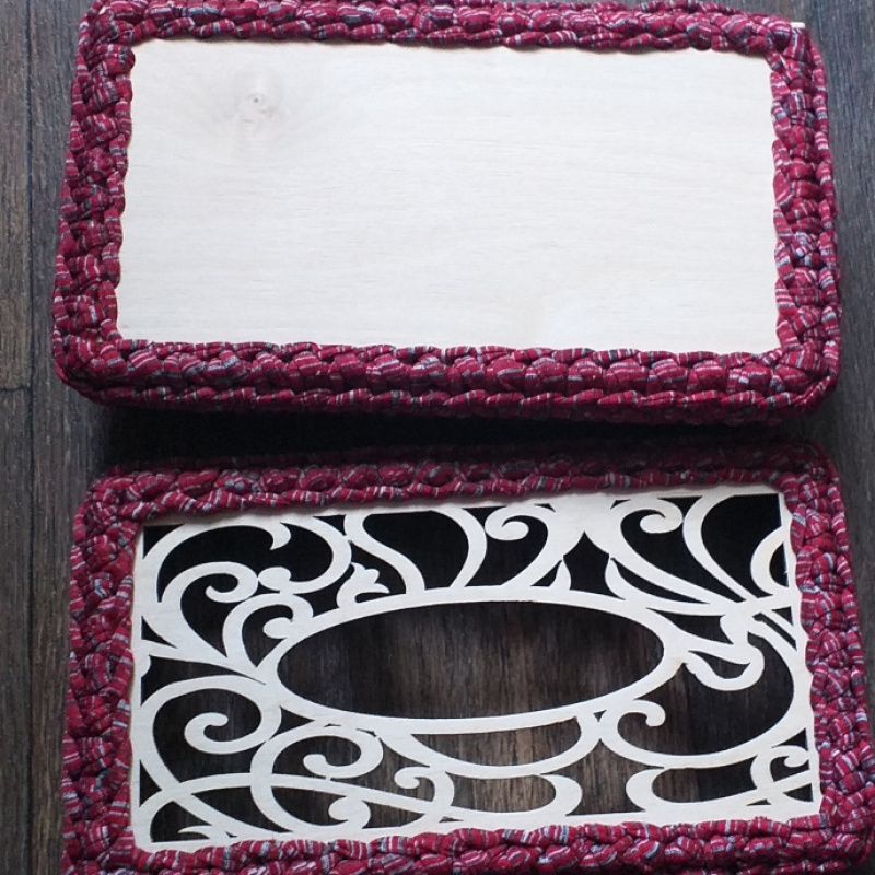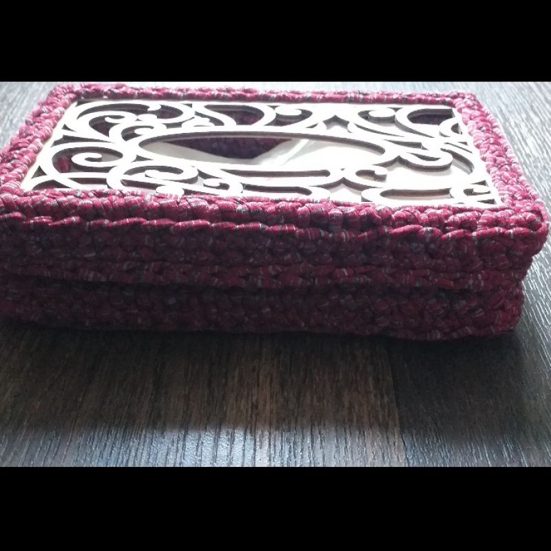 Салфетница из трикотажной нити, низ и вверх заготовка из дерева.