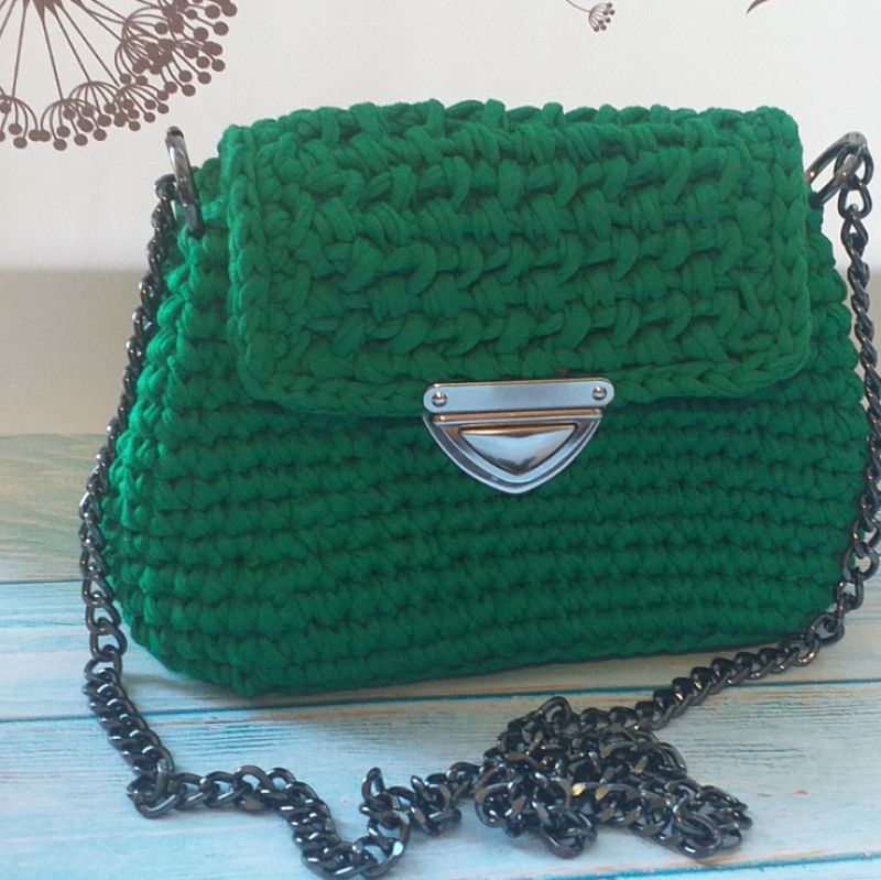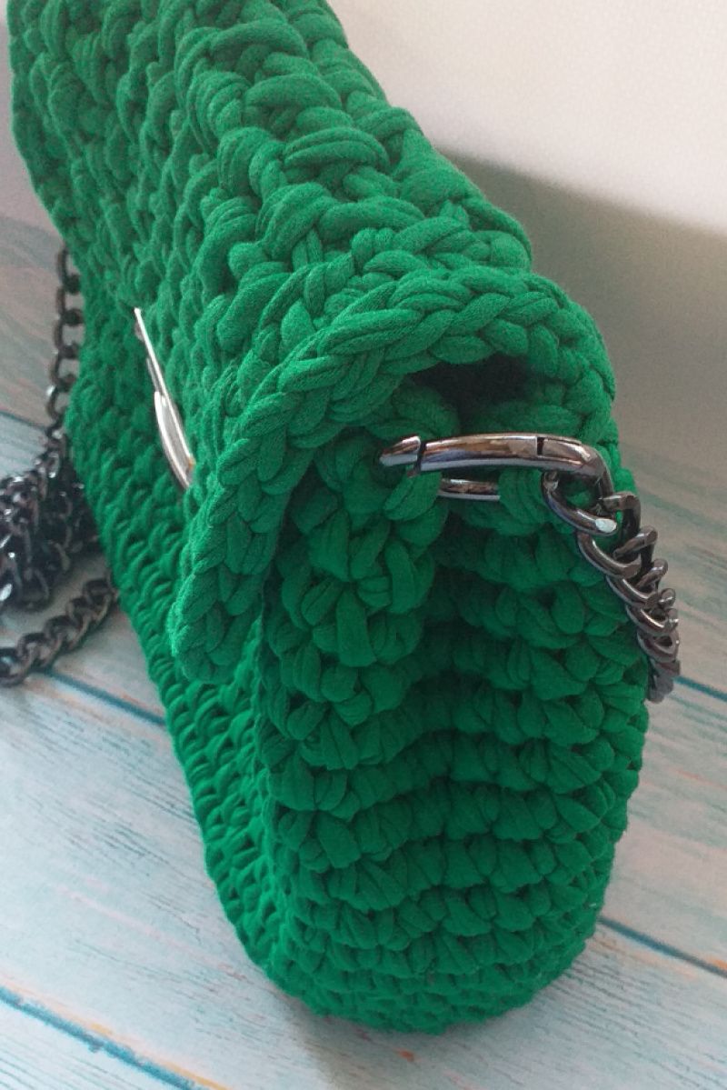 Сумка ручна работа из трикотажной нити, фурнитура серебряного цвета