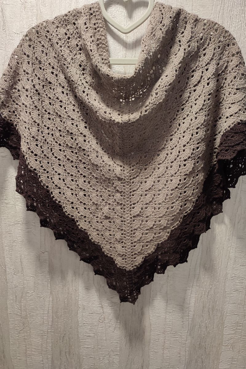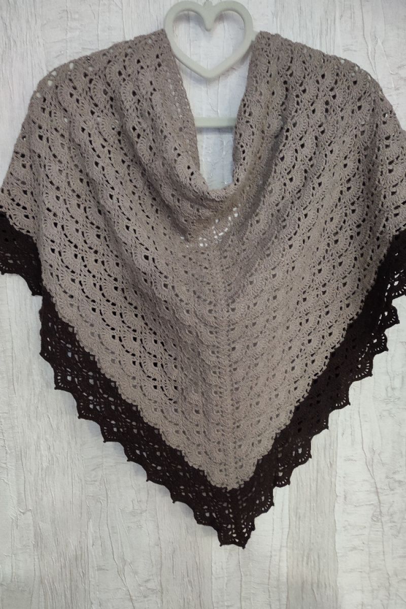Нежный и мягкий на ощупь. Прекрасное дополнение стиля на весенне-осенний период. Вязанный крючком. Размер 65см на 165см. Использованы нити Ethno Cotton 1500 двух цветов. Состав: 70% хлопок и 30% лен. Пряжа не линяет и гладит. Вяжу на заказ такого же вида бактусы.