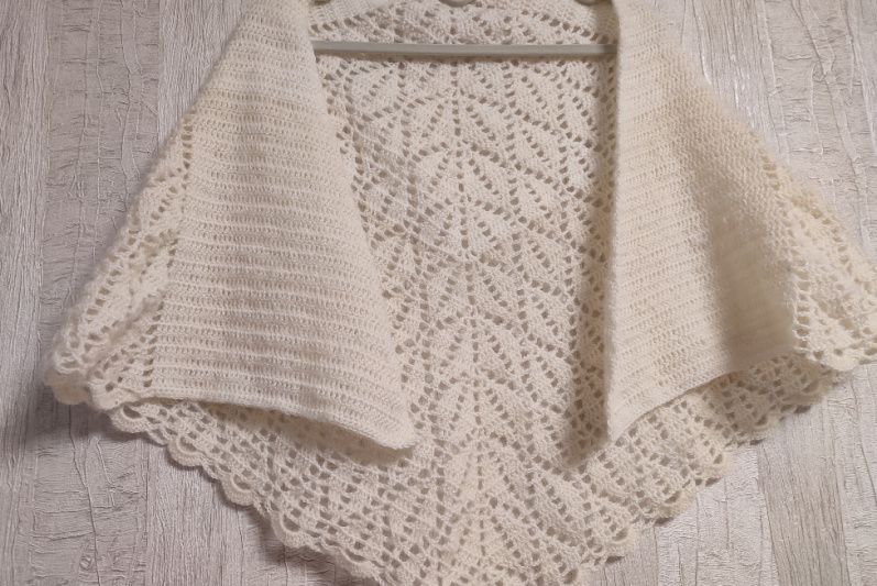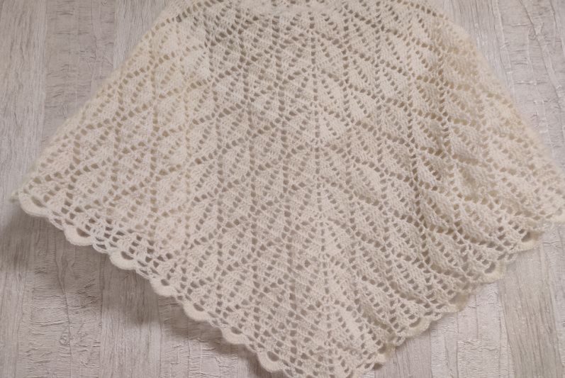 Связанный платок качественной теплой ниточкой немецкого производства. 50% шерсти; 50% полиакрил. Размер платка 65 см на 120 см.