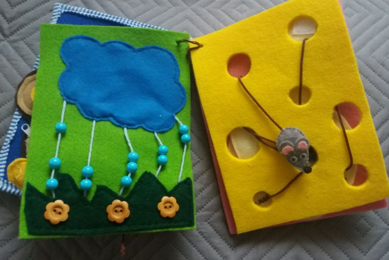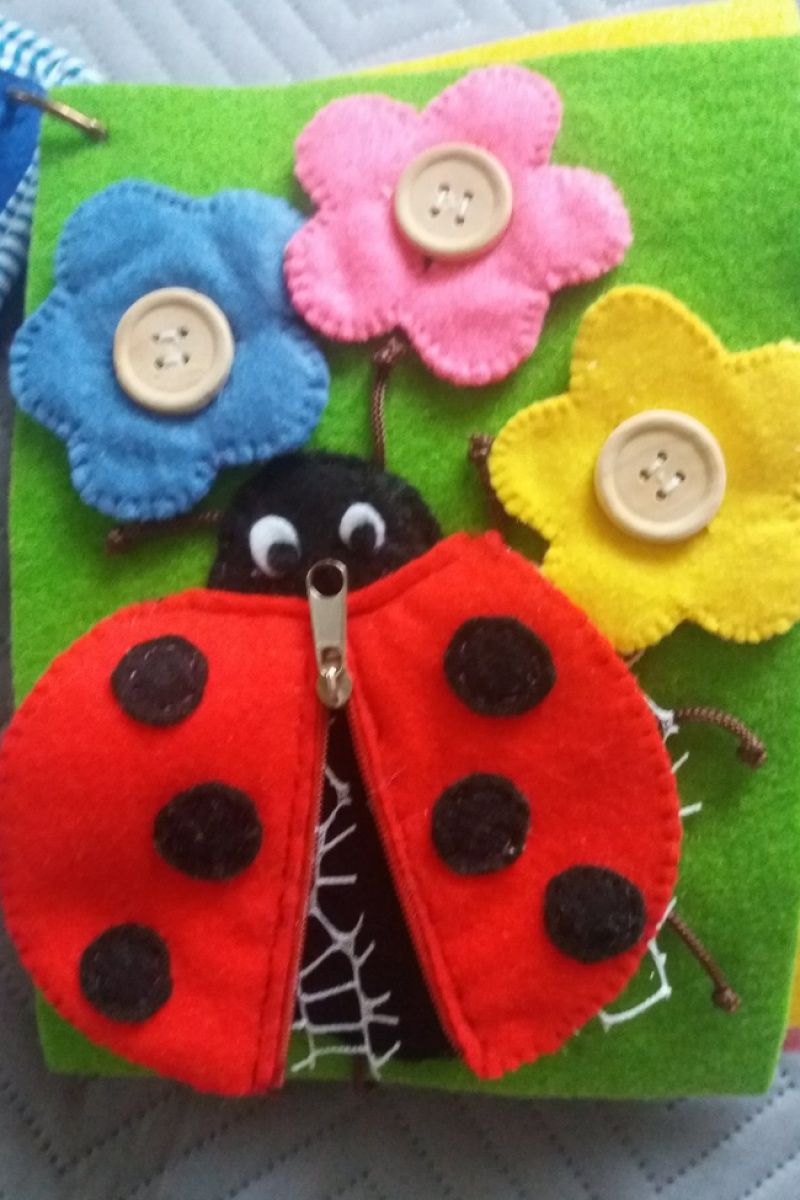 Развивающая книжка для малышей. Каждая страничка - отдельное занятие на развитие мелкой моторики и тактильных ощущений. Возможен индивидуальный подбор страничек. Одна страничка -100 грн. Заказ книжки - от трёх страничек. Книжка из фетра на кольцах.
