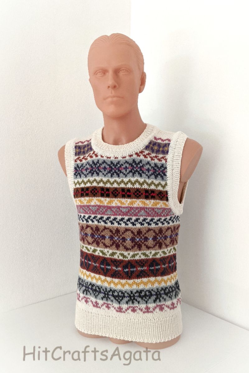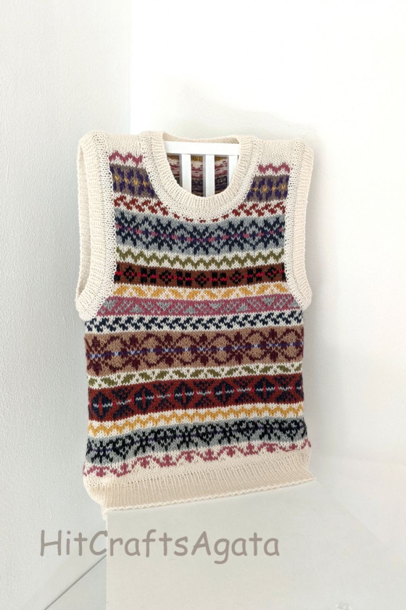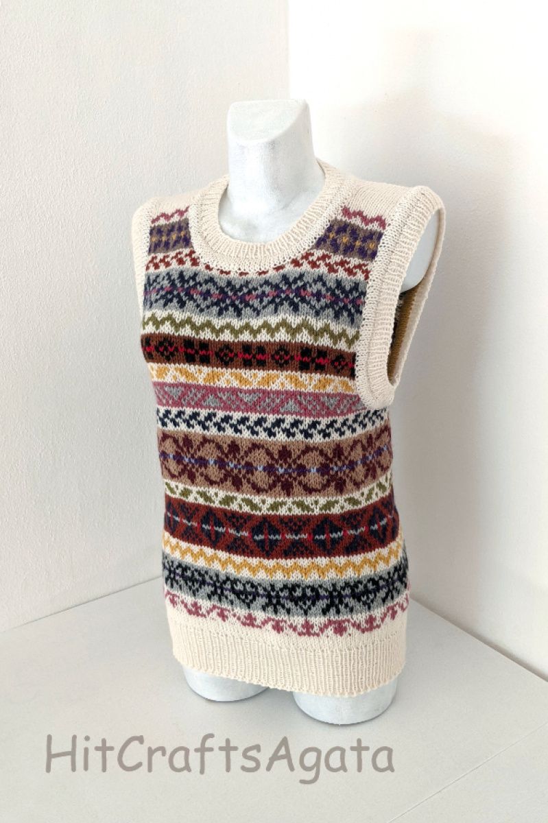 Безрукавка ручної роботи. для чоловіків та жінок. Зв'язана спицями по колу, без швів, в тадиційній ісландскій техніці fair isle.Подвійна обробка краю. Оригінальний одяг для кожного.