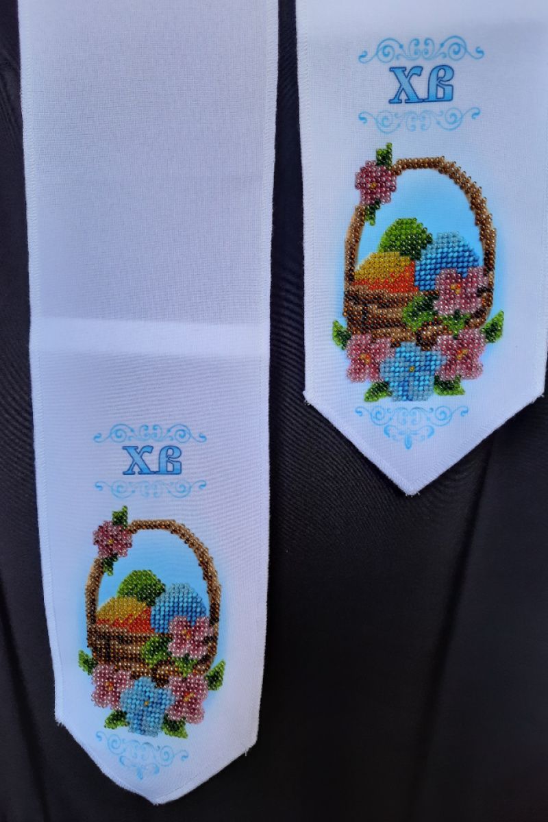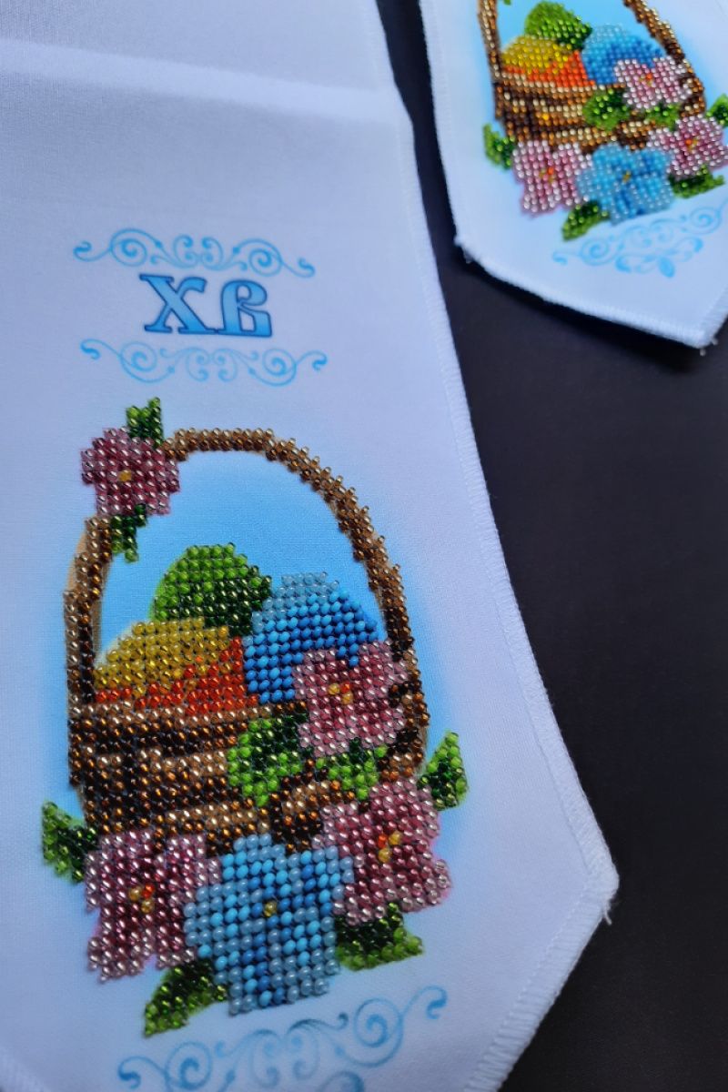 Ваш пасхальную корзину может украсить бант, вышитый бисером Новый, в пользовании ни был Работа аккуратная, без узелков, обратная сторона проклеен флизелином Количество цветов: 15шт Количество бисера: 2 146шт