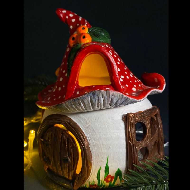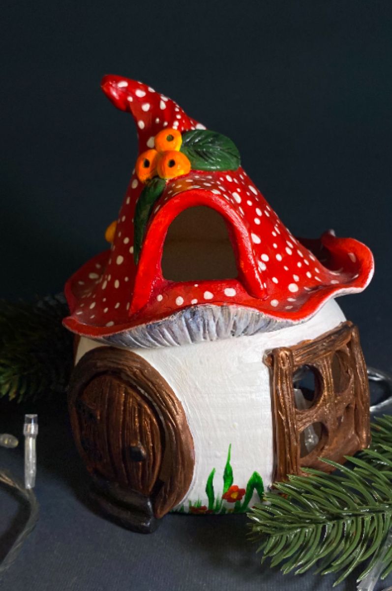 Подсвечник слеплен из глины, обожжен в печи и покрашен акриловыми красками.