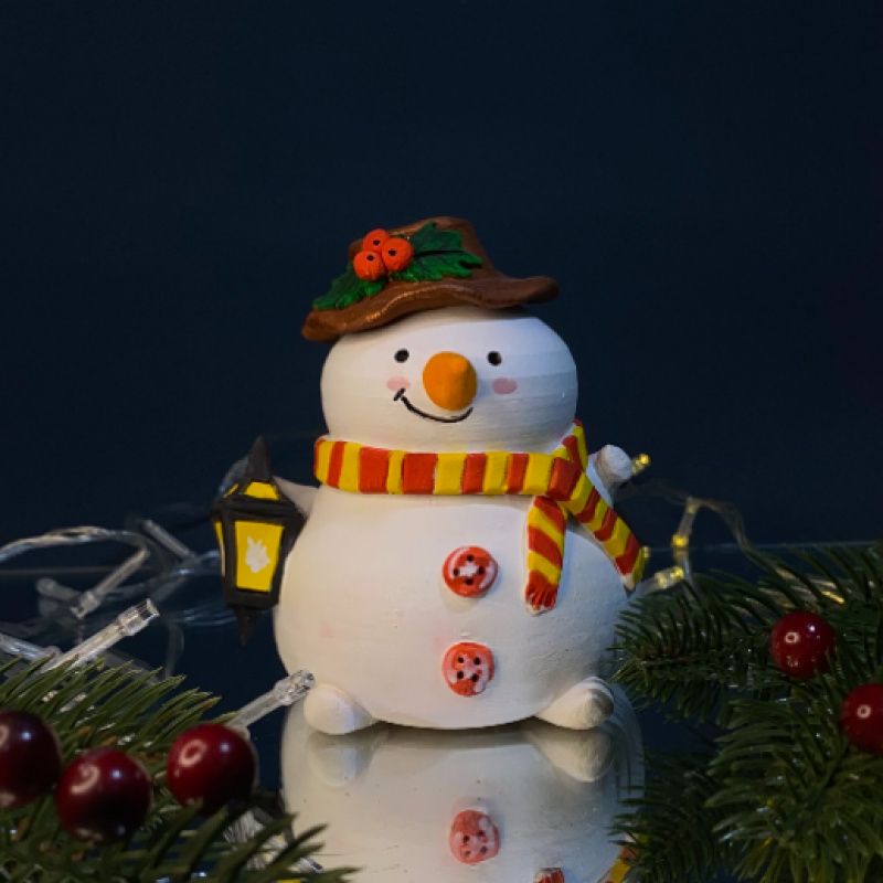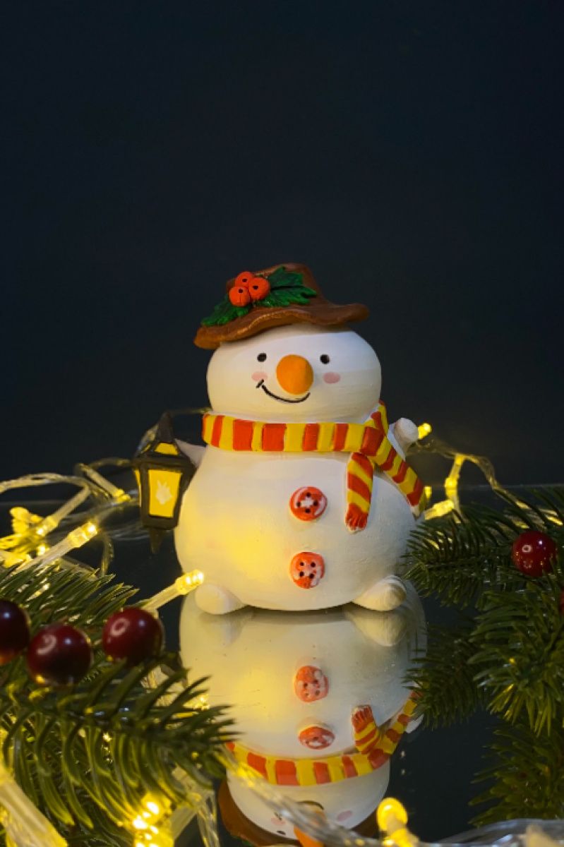 Снеговик сделан из глины, обожжен в печи и раскрашен акриловыми красками, полностью ручная работа!