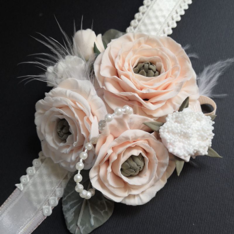 Бутоньерка на руку бутоньерка закреплена на ленте, которая завязывается на запястье. Полностью ручная работа. Все цветы вылеплены из зефирной полимерной глины. Легко подбирается любой цвет и оттенок. Изделия легкие, мягкие и нежные. Срок исполнения 2 недели. Доставка Новой почтой куда угодно. Эти изделия легко транспортируются. Локация Львов Любинская Звони или пиши на viber 0673142713