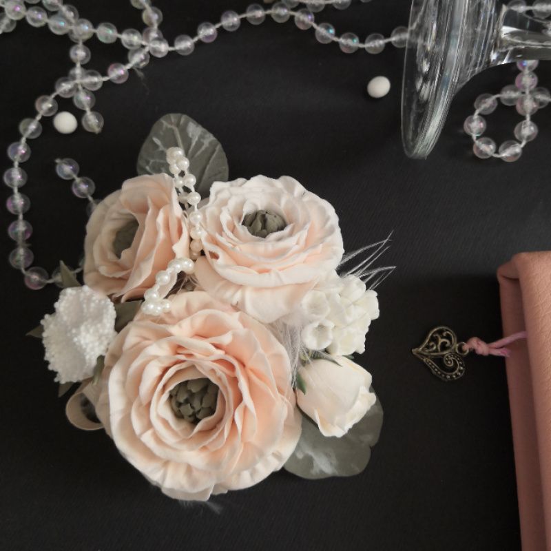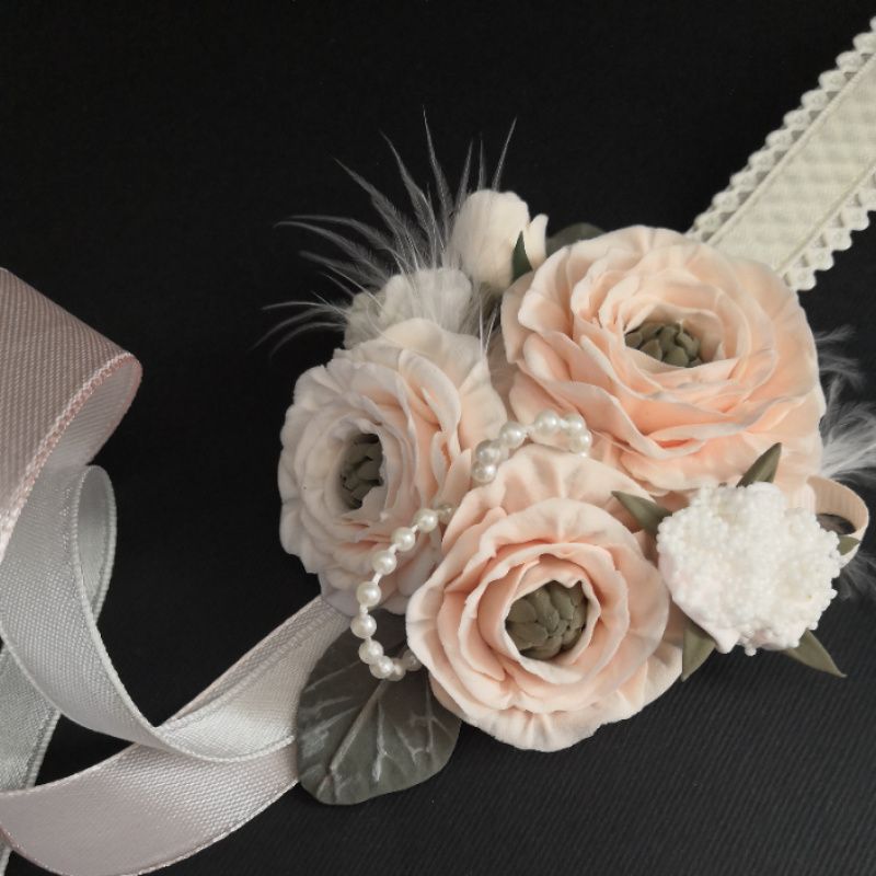 Бутоньерка на руку бутоньерка закреплена на ленте, которая завязывается на запястье. Полностью ручная работа. Все цветы вылеплены из зефирной полимерной глины. Легко подбирается любой цвет и оттенок. Изделия легкие, мягкие и нежные. Срок исполнения 2 недели. Доставка Новой почтой куда угодно. Эти изделия легко транспортируются. Локация Львов Любинская Звони или пиши на viber 0673142713
