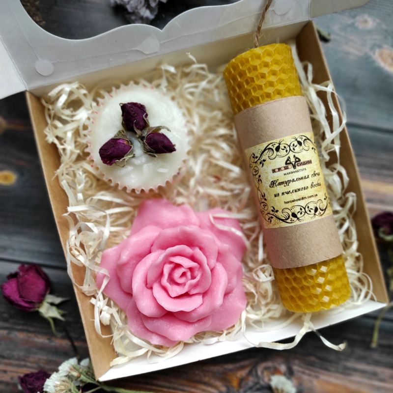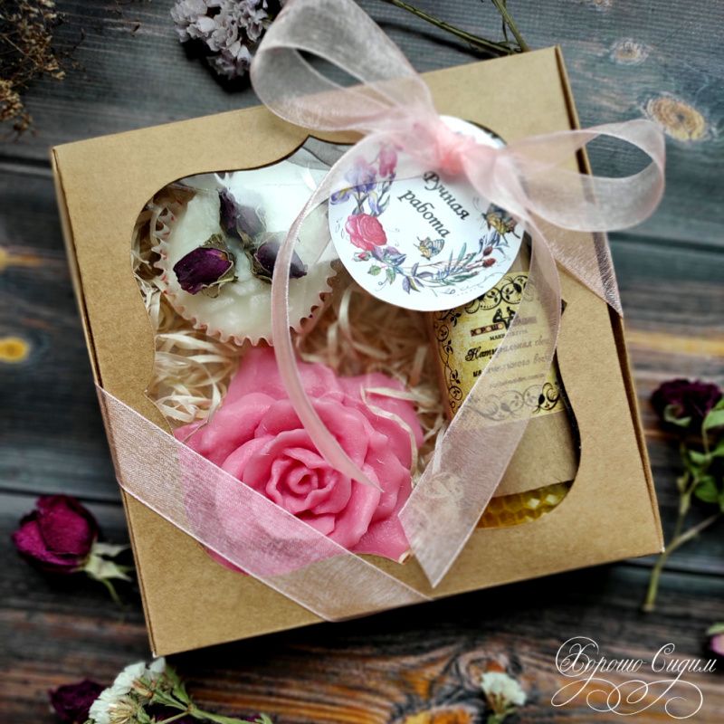 Подарочный набор с нежным ароматом роз и мёда. В составе мыло ручной работы из растительных ингредиентов для бережного очищения кожи. Пралине для ванны при растворении в тёплой воде превращается в нежное молочко, которое питает кожу и оказывает расслабляющее действие. А также свеча из пчелиного воска, которая при сгорании источает чудесный аромат меда и очищает пространство. Набор упакован в крафт коробочку с прозрачным окошком с атласной лентой и биркой.