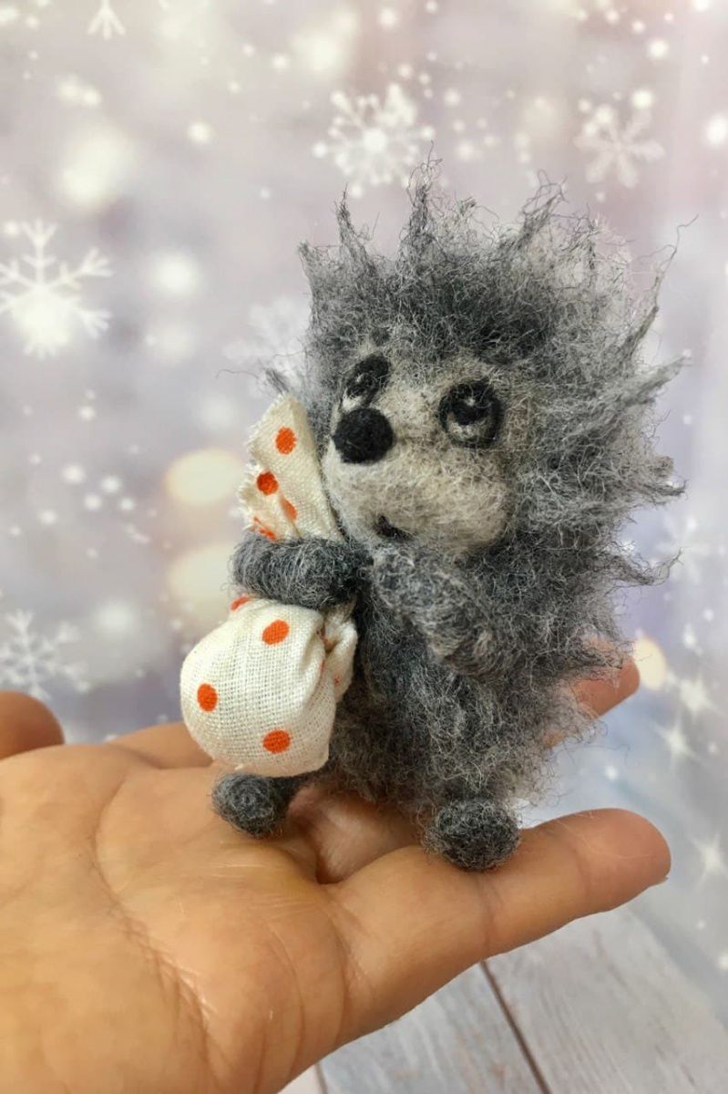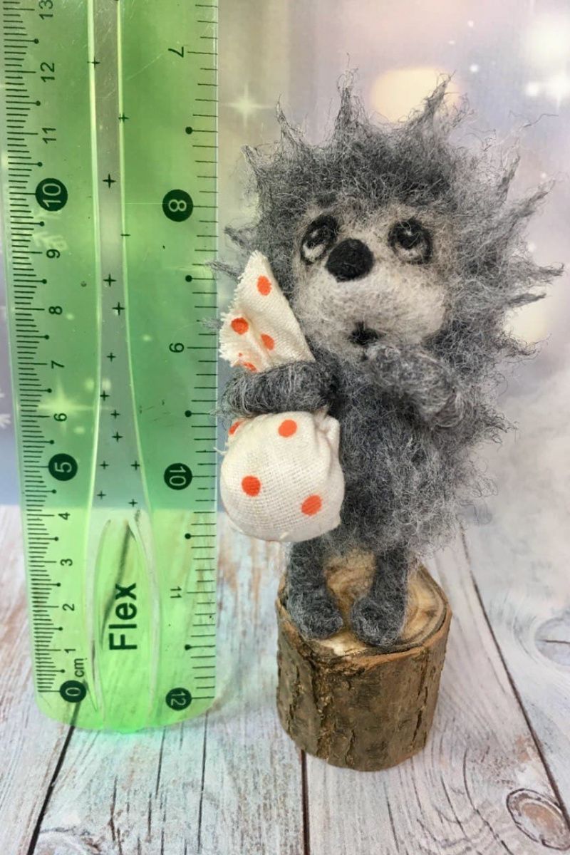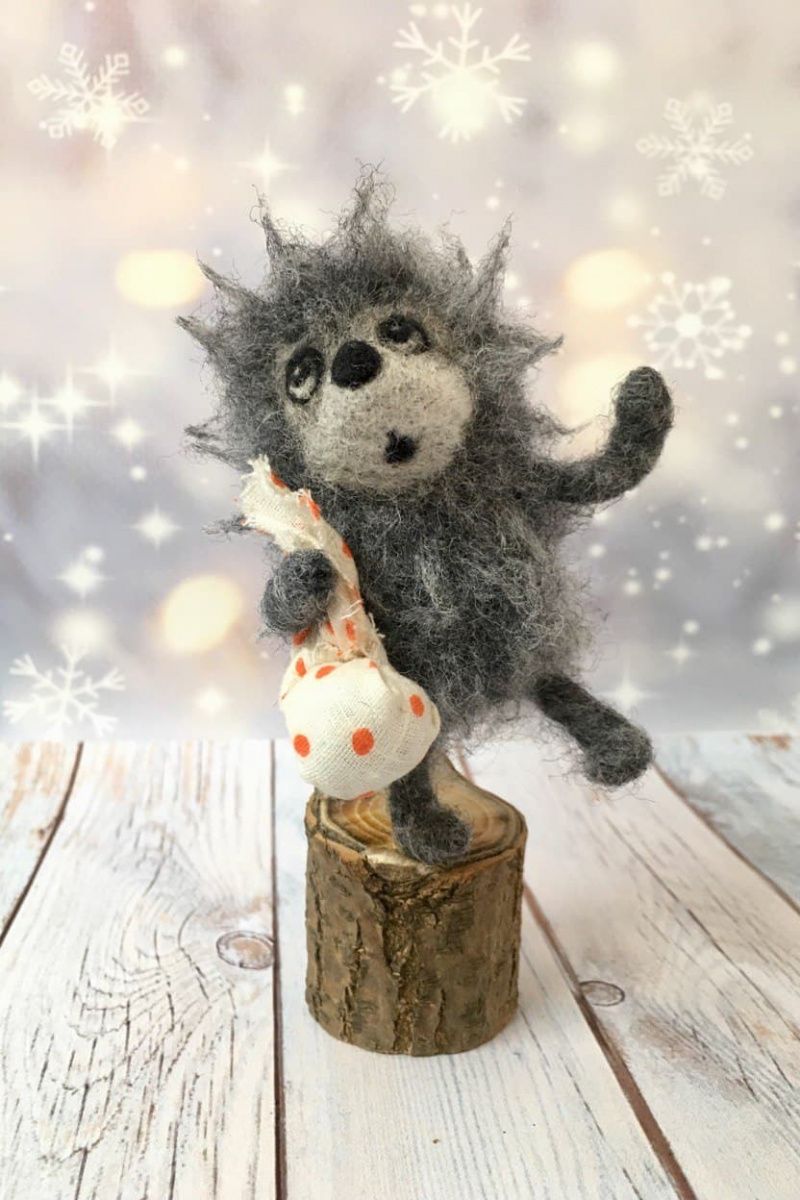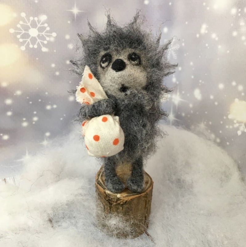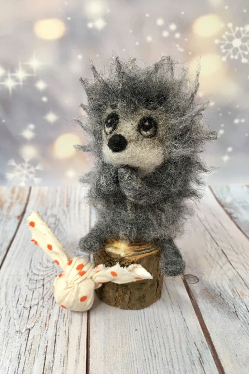 Ежик изготовлен из натуральной шерсти в технике сухого валяния. Ручки и ножки гибкие, также может стоять на пенечку.