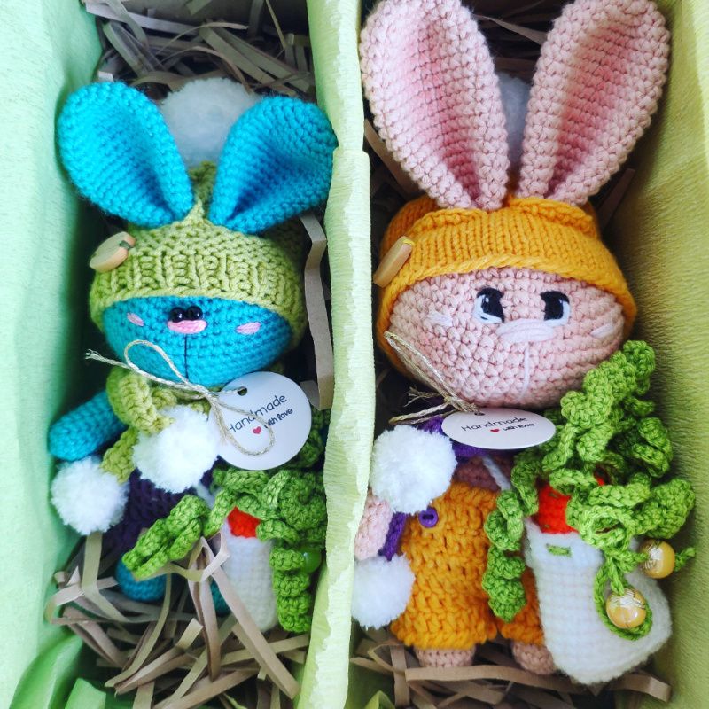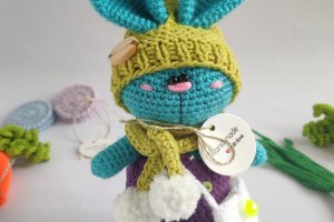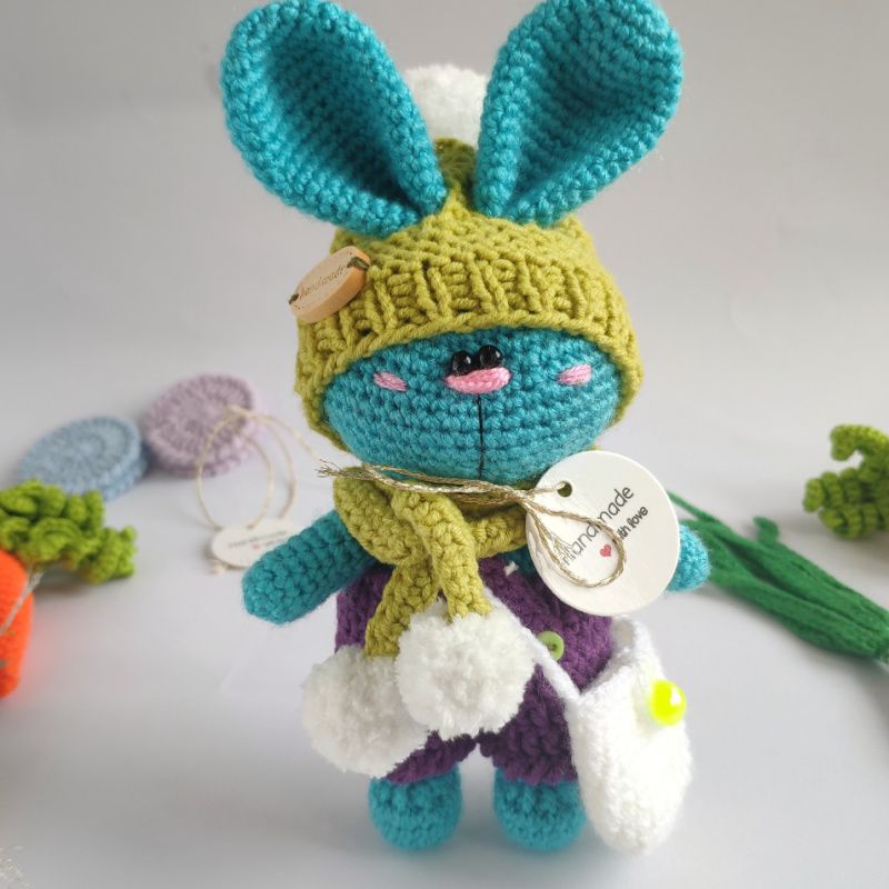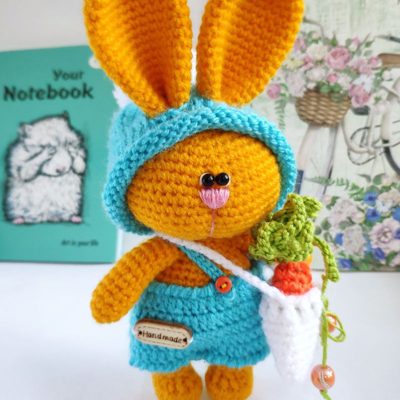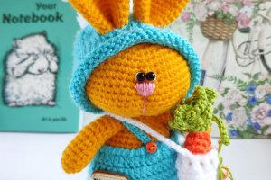Зайчик для примера выполнен из акриловый пряжи,но повтор только из полухлопка и хлопка, эта пряжа не ворсится.