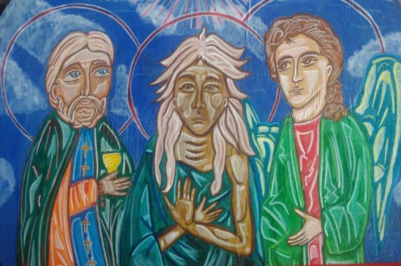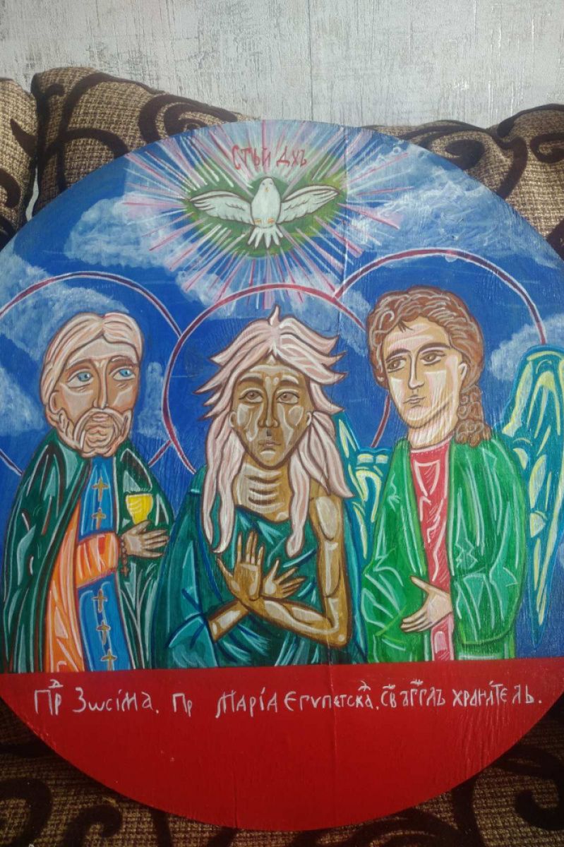 Икона: Мария Египетская, Преподобный Зосима, Ангел Хранитель.