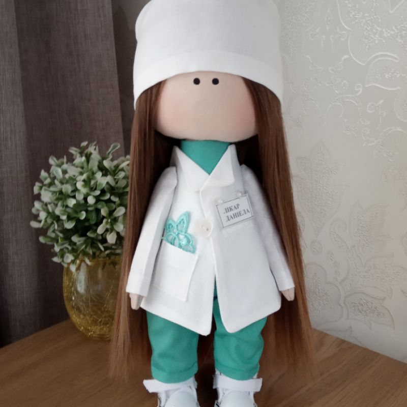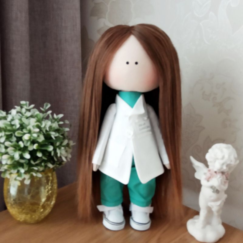 Кукла ручной работы Доктор со всей медицинской атрибутикой.