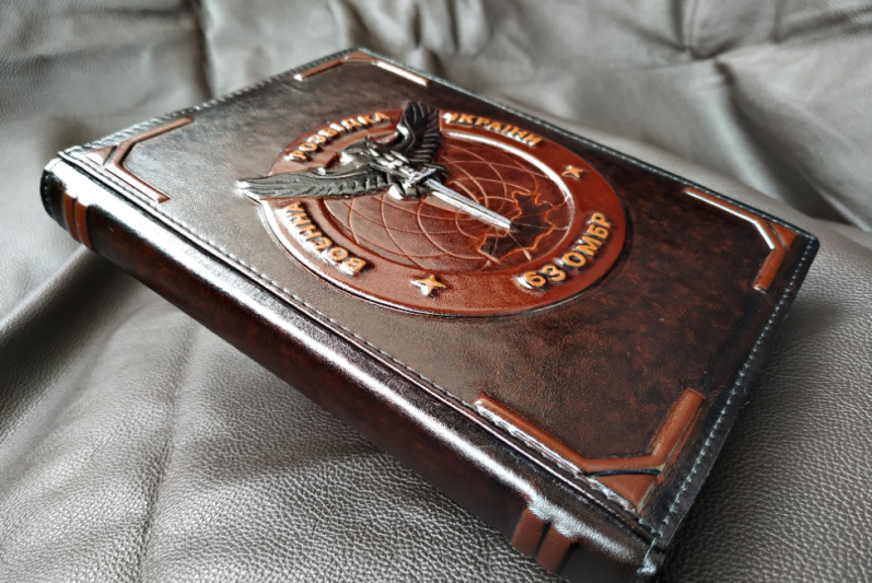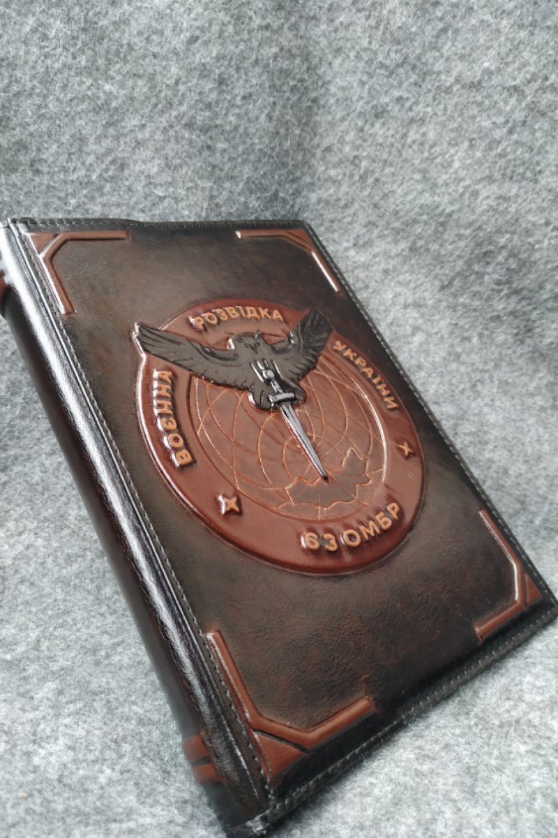 Дневник "Разведчик" не датирована формат А5. Съемная обложка выполнена из натуральной кожи с объемным тиснением. Возможно изготовление на заказ в различных вариантах, рисунки, узоры, логотип, имена и т.п. Обсуждается индивидуально.