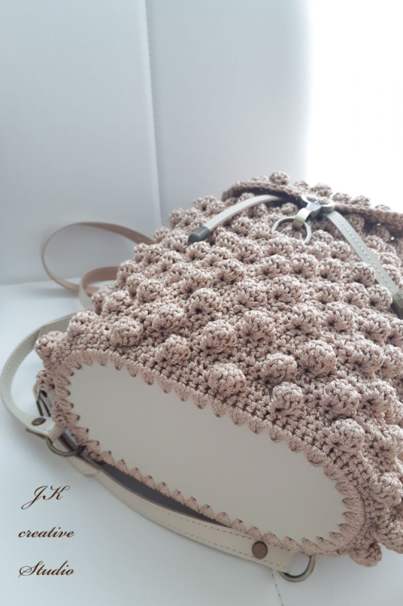 Рюкзачки ручной работы с шикарным узором из прочного шнура и лёгкие в уходе. Ремни и дно из натуральной кожи. Внутри подкладка с кармашком, хлопок.