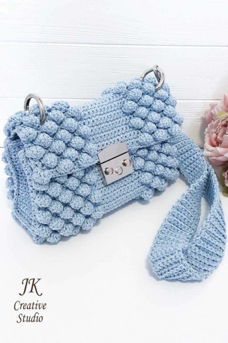 И снова дизайнерская сумочка с шишечками "Элит", теперь в голубом цвете с блеском! Сумочка ручной работы всегда модный и красивый аксессуар!