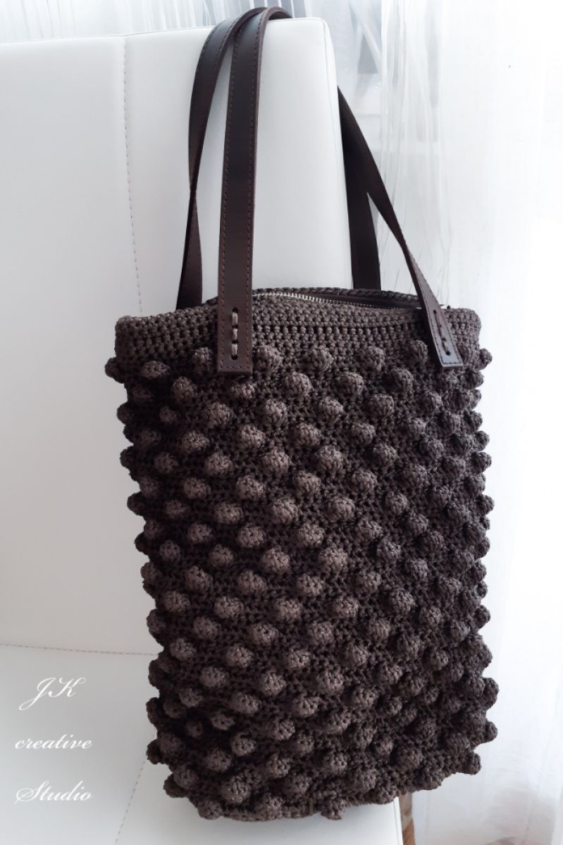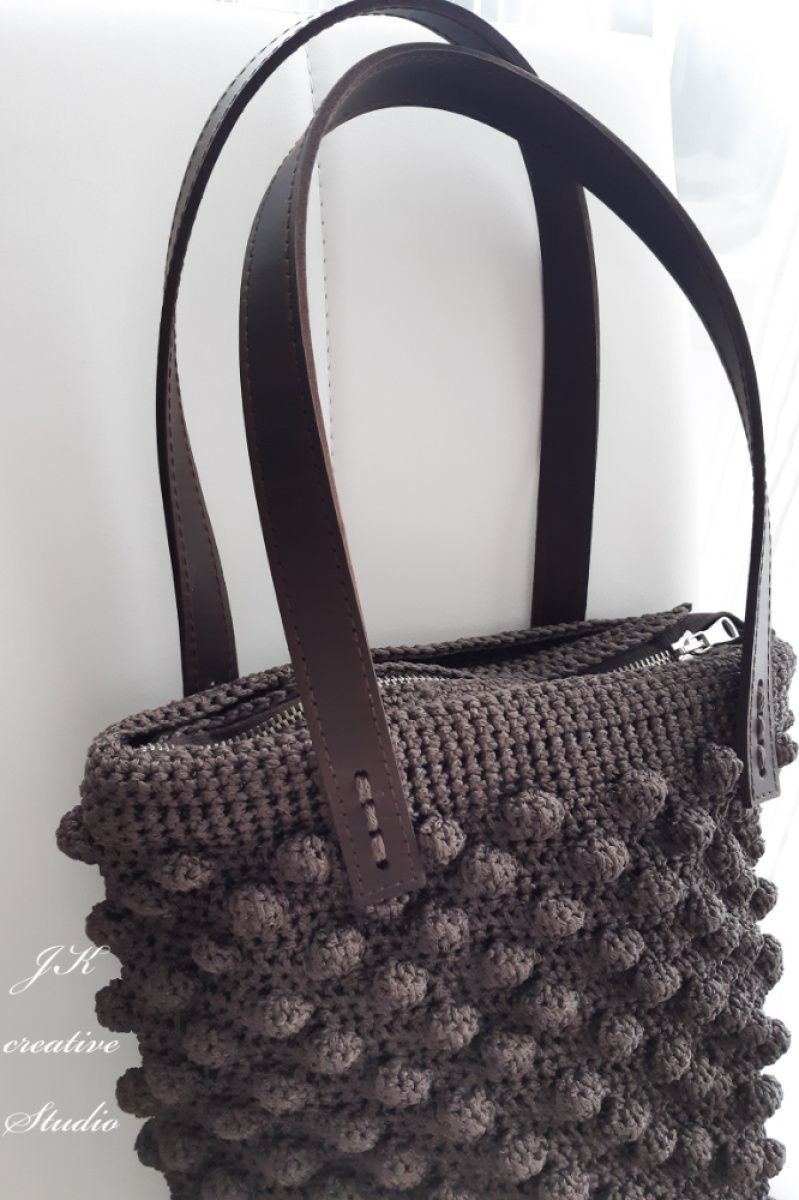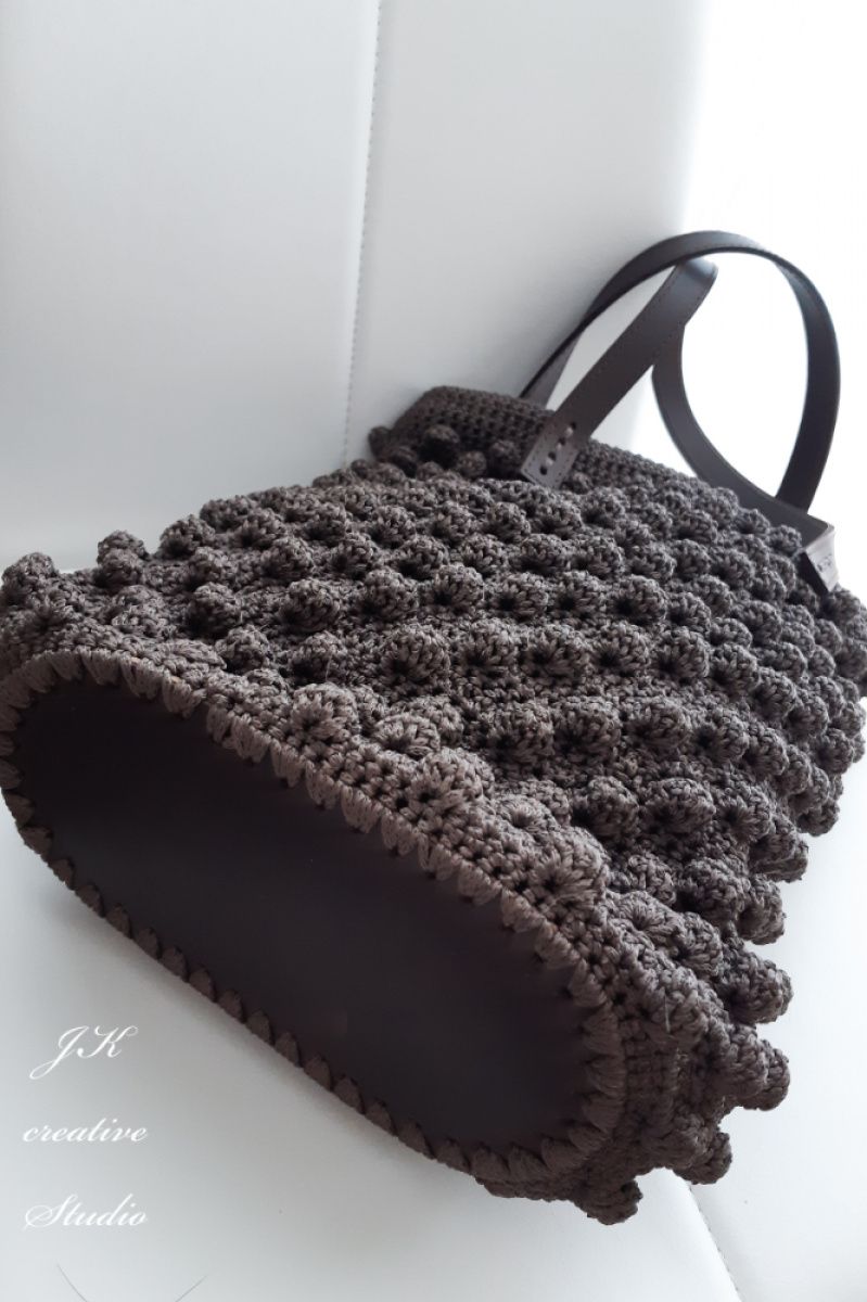 Сумочка ручной работы с шикарным узором из прочного шнура и лёгкий в уходе. Ручки и дно из натуральной кожи. Внутри подкладка с кармашком, хлопок.