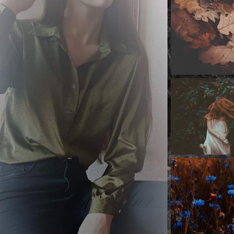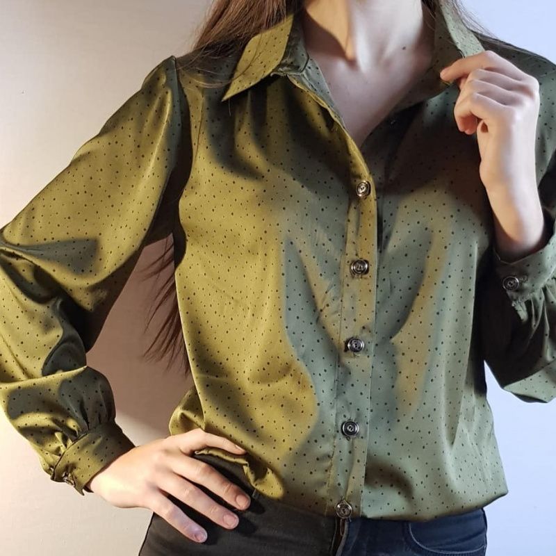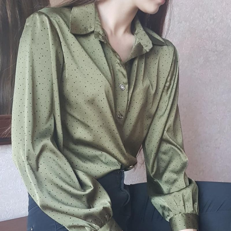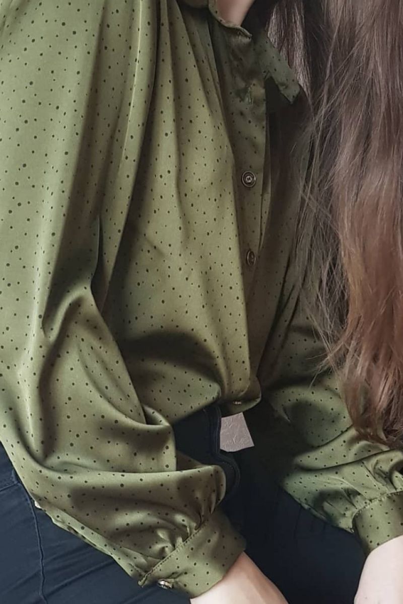 Блузка горошек из искусственного шелка. Цвет хаки.