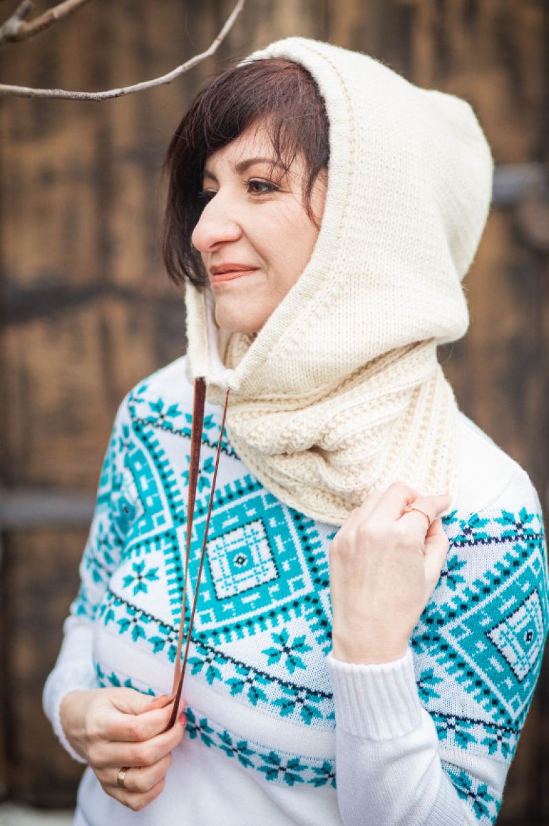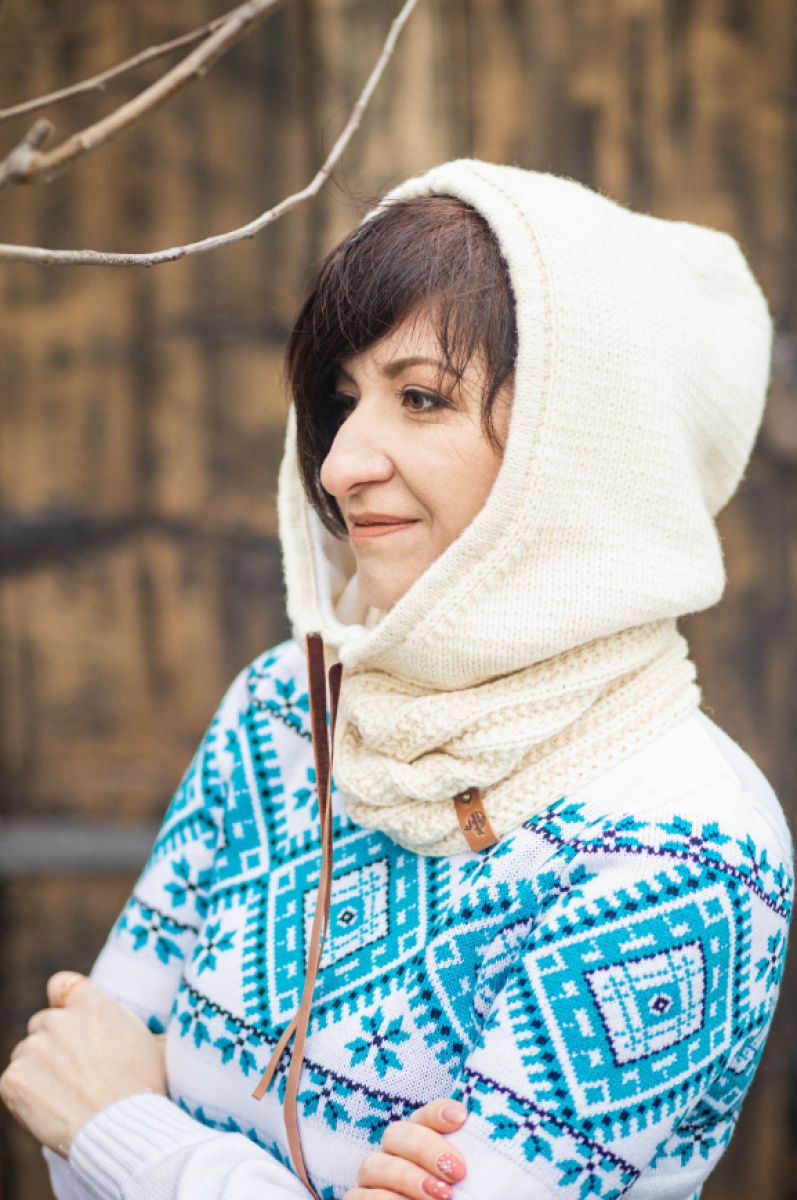 Стильный вязаный капор. Капор может быть связан с перчатками по желанию заказчика. Цвет, размер и пряжа для изготовления согласовывается с заказчиком. Стоимость изделия при этом, будет зависеть от выбранного материала