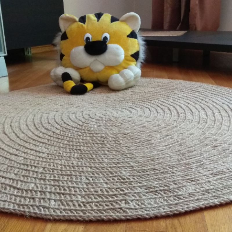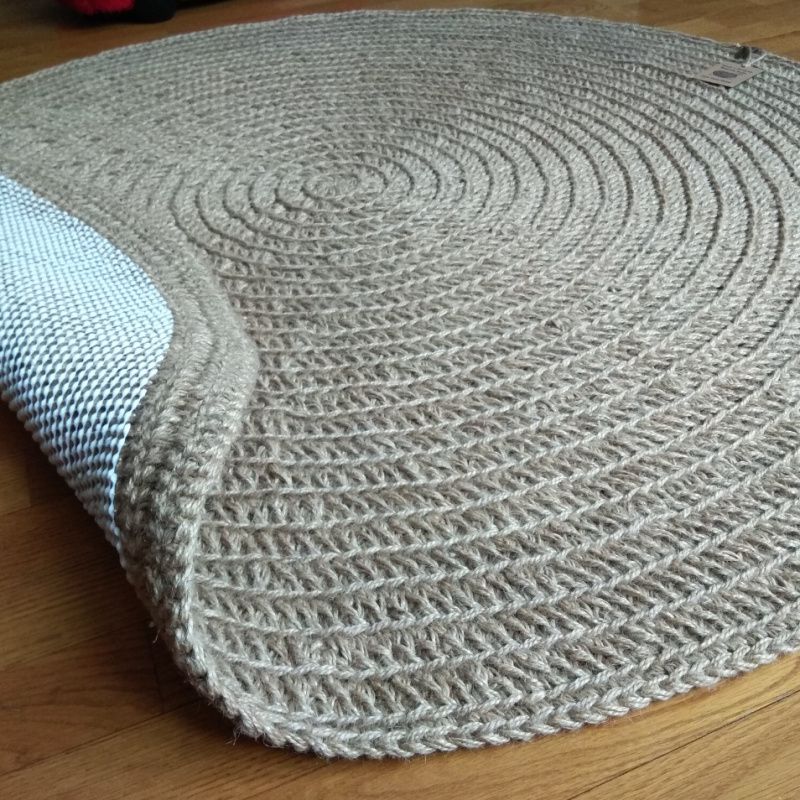 Круглый коврик, связанный вручную крючком. Материал - джут. Диаметр - 100 см. Толщина 1,2 см.