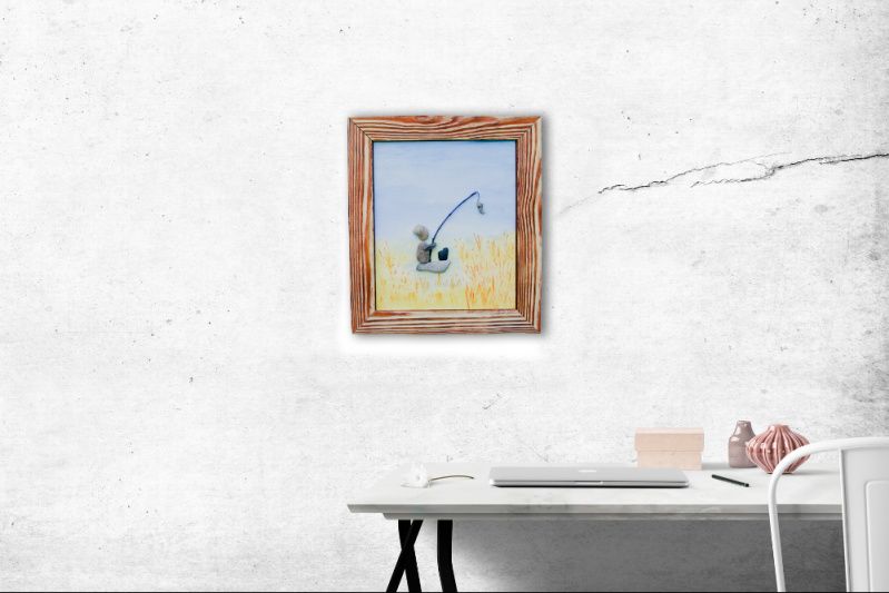 Картина обрамлена в уникальную деревянную раму собственного изготовления, имеющую крепление для размещения на стене.