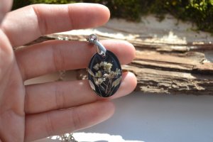 Украшение изготовлено из эпоксидной ювелирной смолы и сухоцветов.