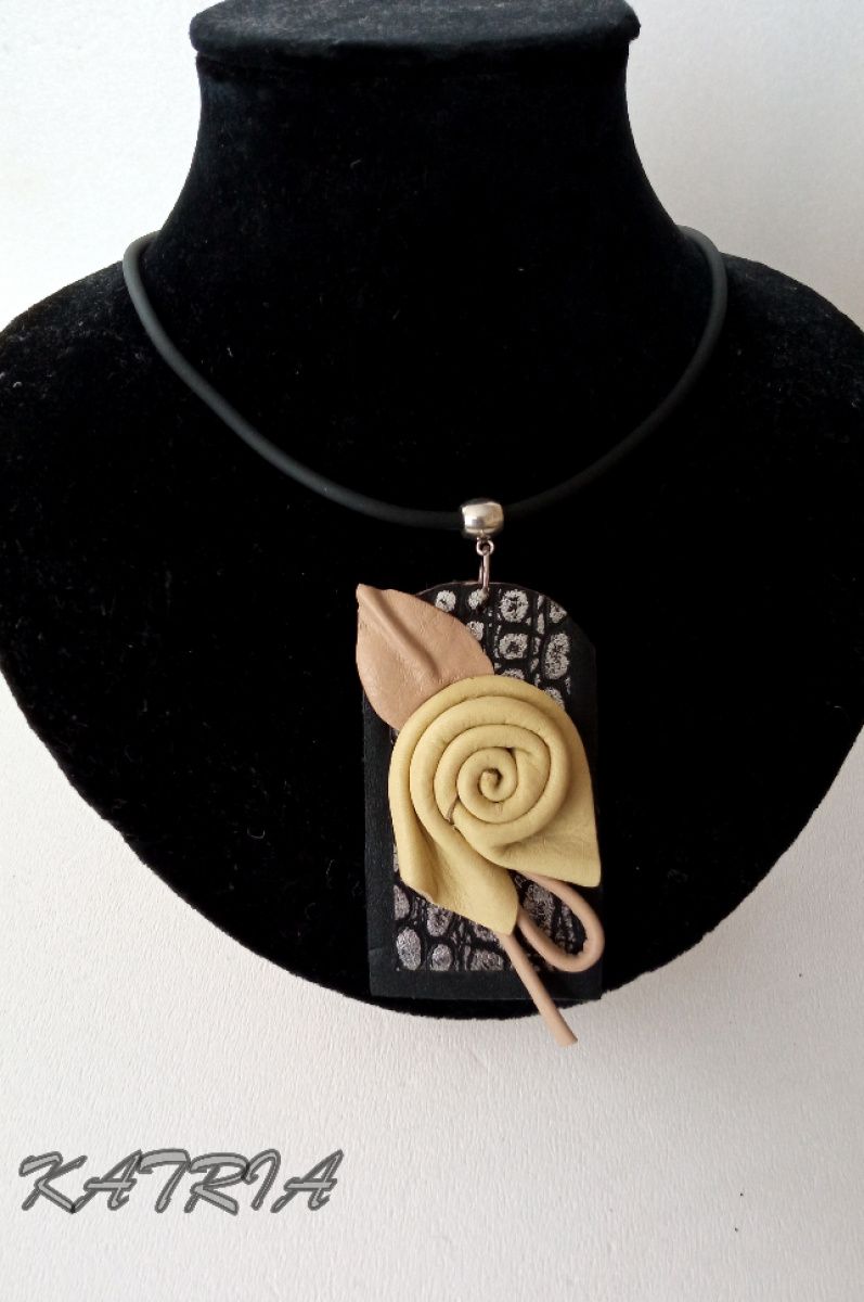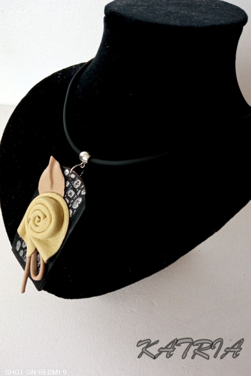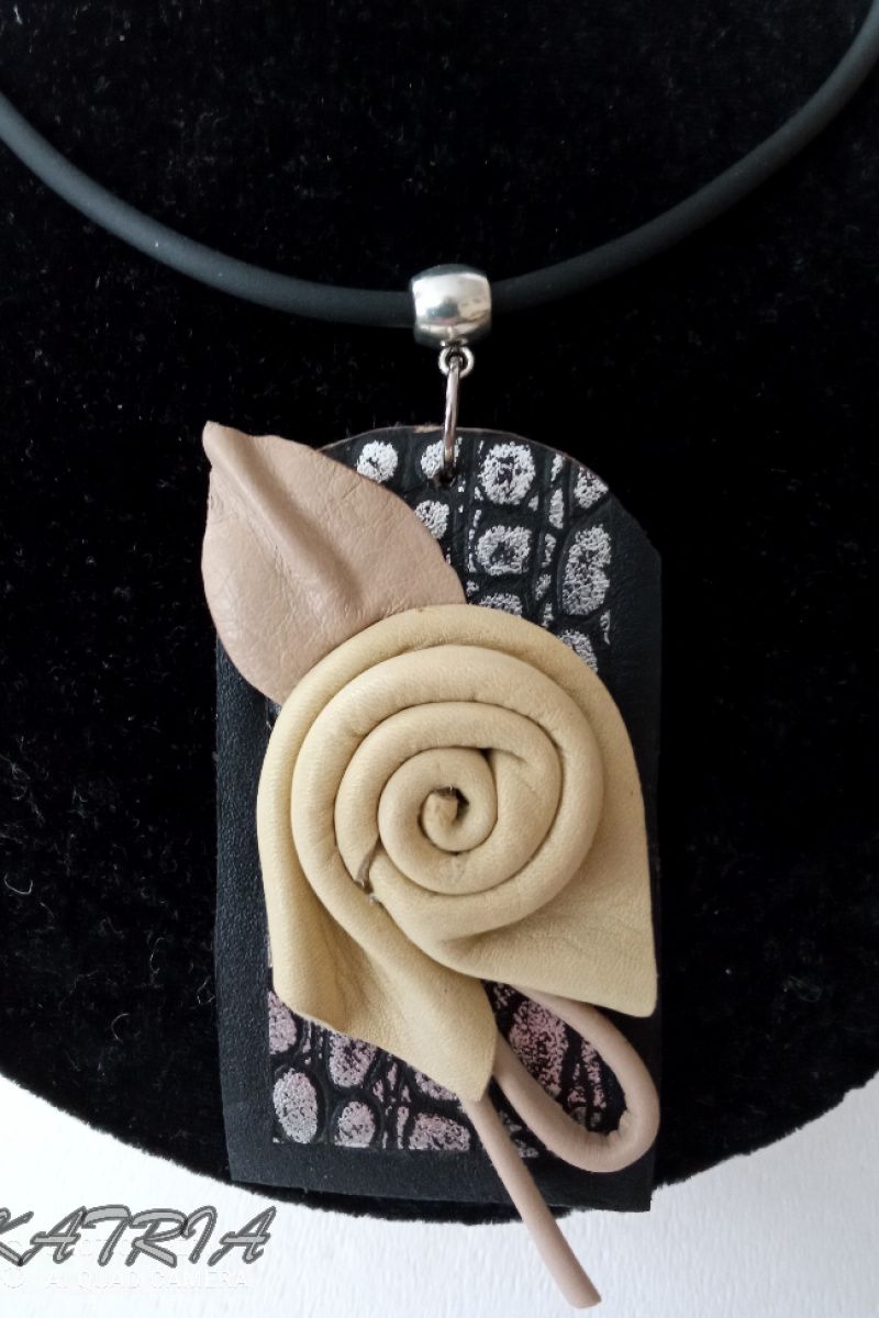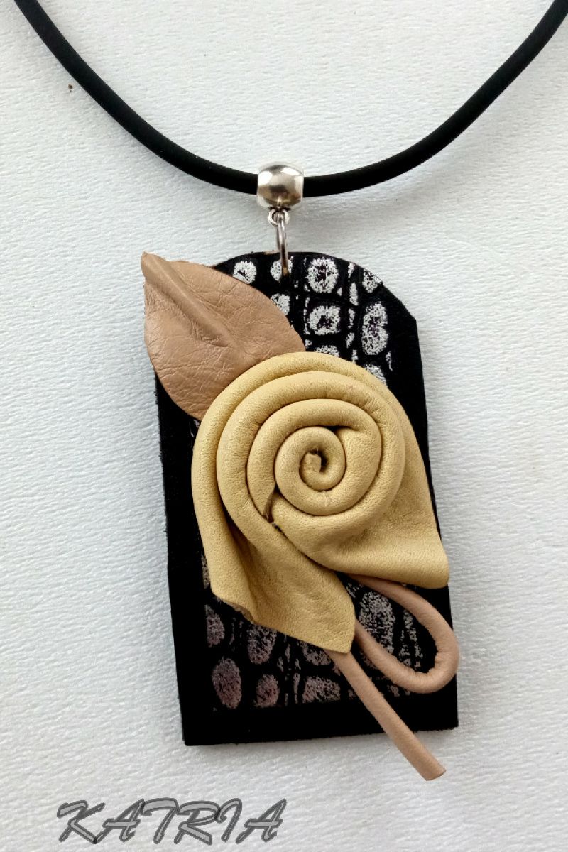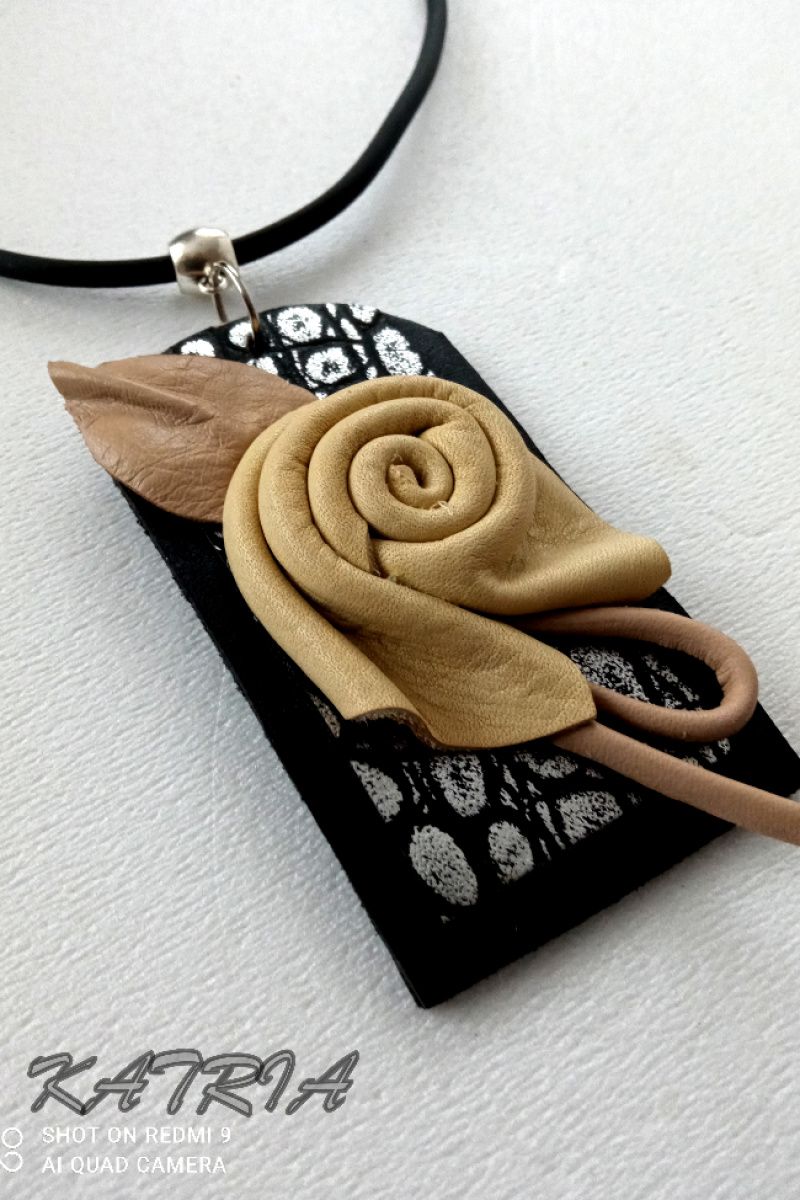 Кулон виготовлений зі шкіри на шкіряній основі на каучуковому шнурі, застібка - гачечок.