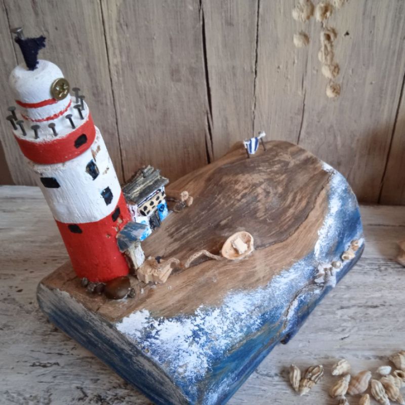 Морская тема в декоре всегда успокаивает, дает возможность помечтать. Этот маяк на берегу моря даст возможность его владельцу почувствовать домашний уют. Натуральное дерево и экологические материалы. Размеры 15 х 20 х 12 см. Отличный вариант для подарка.