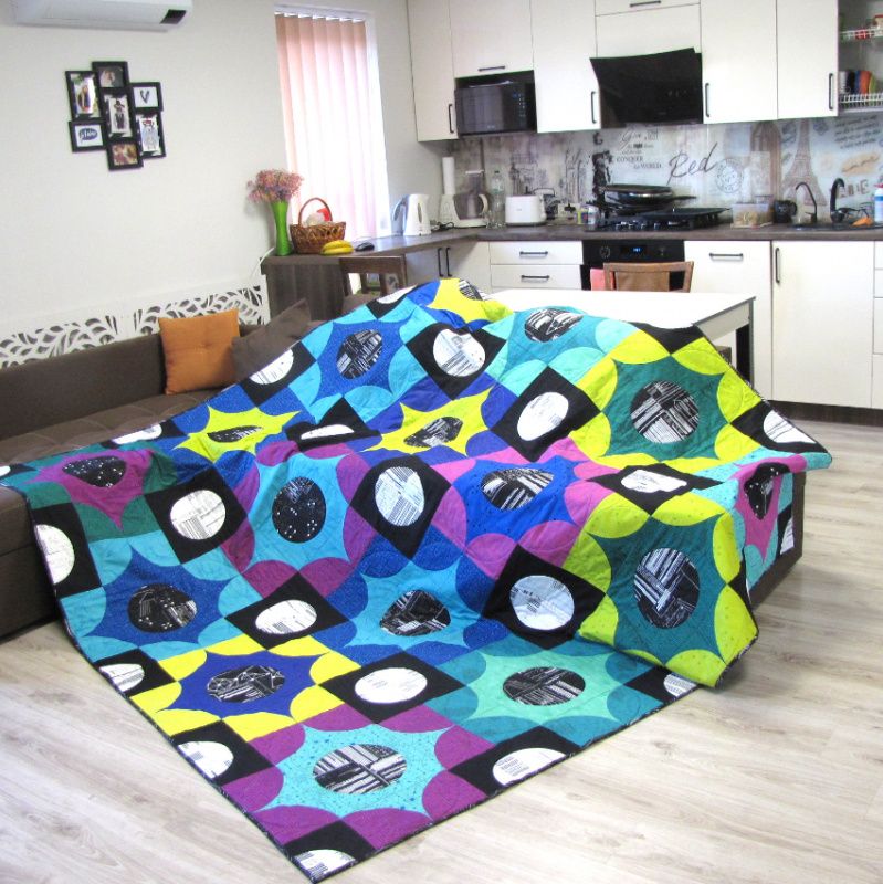 Лоскутное покрывало из американского коллекционного хлопка. Наполнитель хлопок. Стежка машинная.