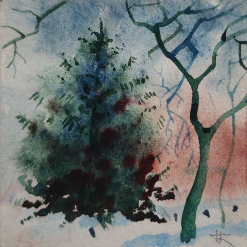 Акварель "Елка на снегу" 7х7, 2008. не оформлена, при необходимости оформляется по желанию заказчика
