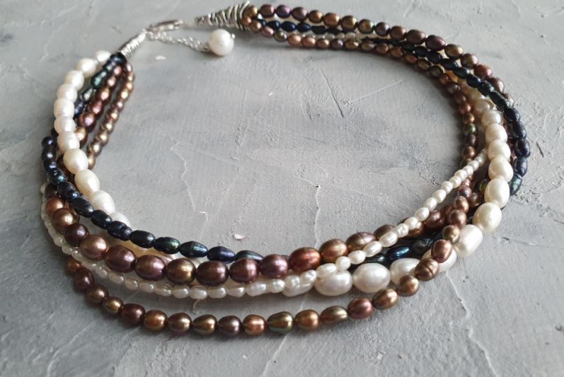 Интеллигентное, достойное, изысканное украшение из натурального жемчуга разных форм и разного цвета.