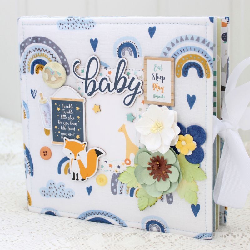 Альбом ручной работы для малыша. Формат альбома 20х20, внутри 8 страниц с тематическим декором, рассчитан до 35 фотографий на английском языке. Альбом есть в наличии.