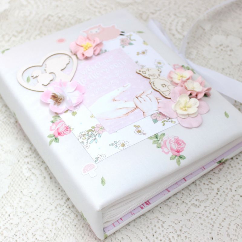 Альбом ручной работы для девочки с файловым блоком на 200 фотографий 10х15. Формат альбома 17х23, тканевая декорированная обложка на основе синтепона.