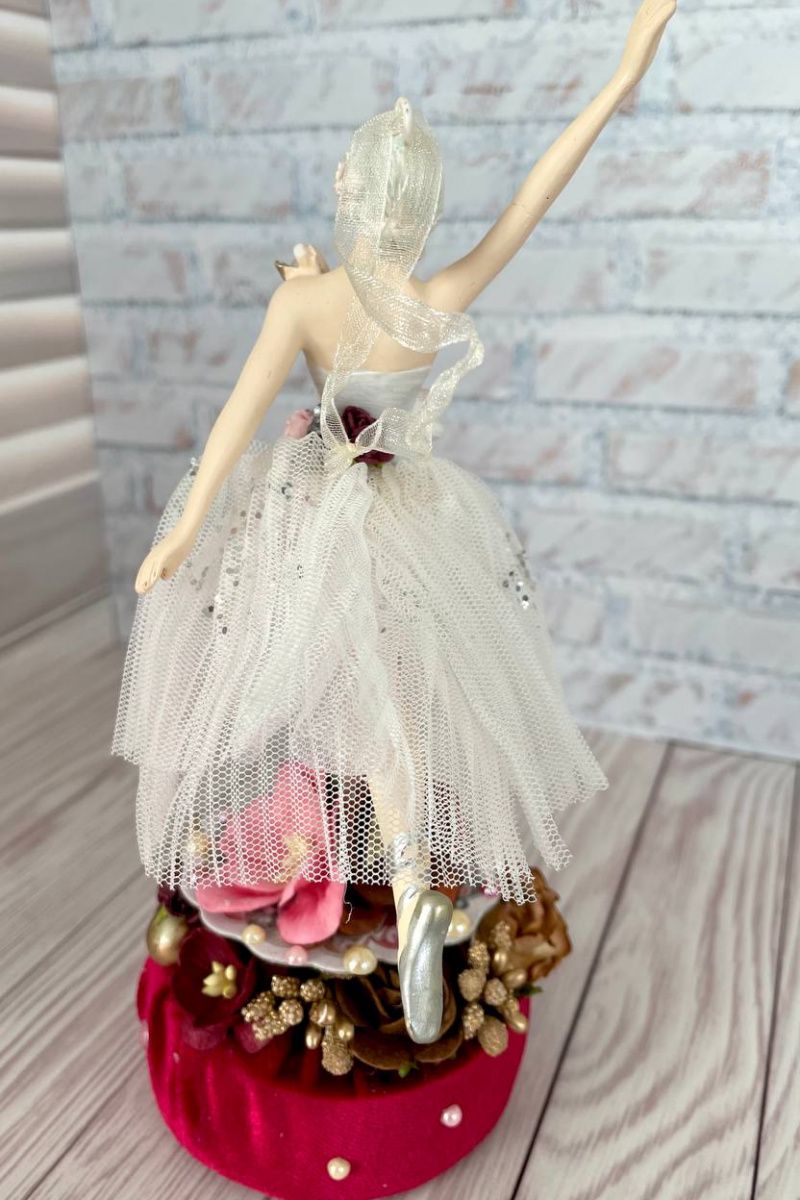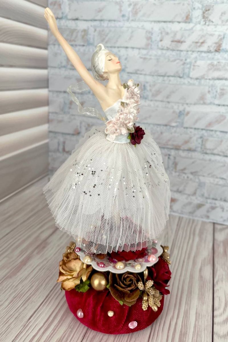 Оригинальная ёлочная игрушка ручной работы балерина на декоративной подставке.