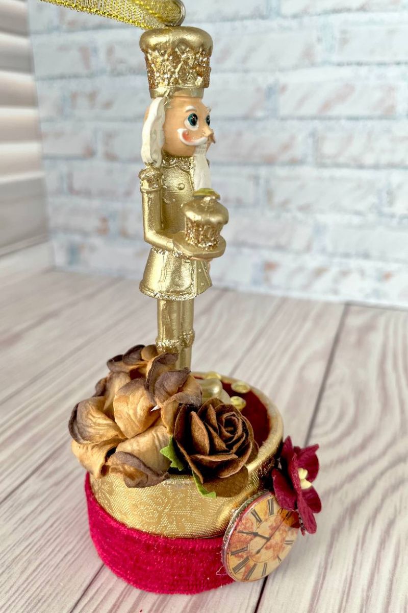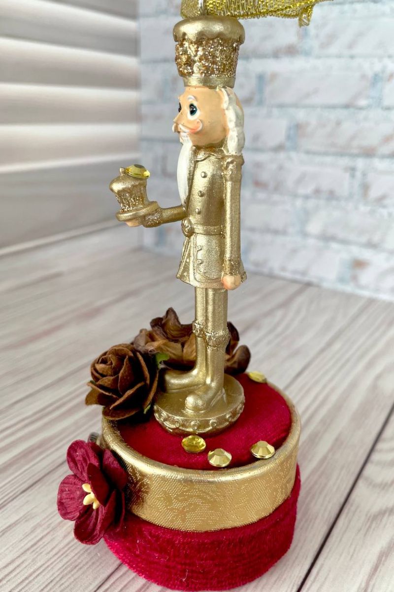 Оригинальная ёлочная игрушка ручной работы щелкунчик на декоративной подставке.