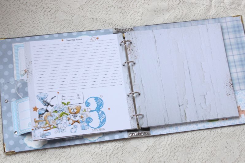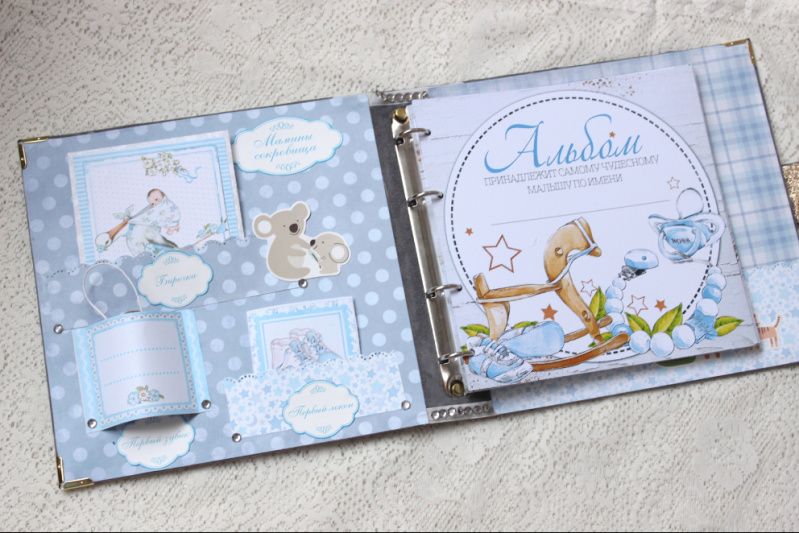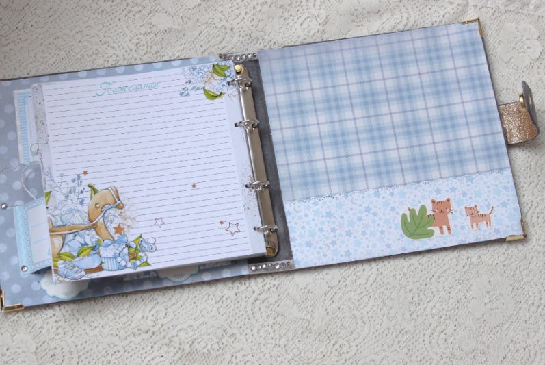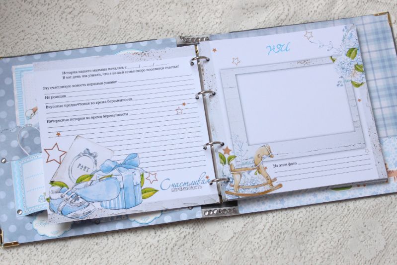 Также в альбоме декорированные форзацы, имеются конверты для памятных мелочей.