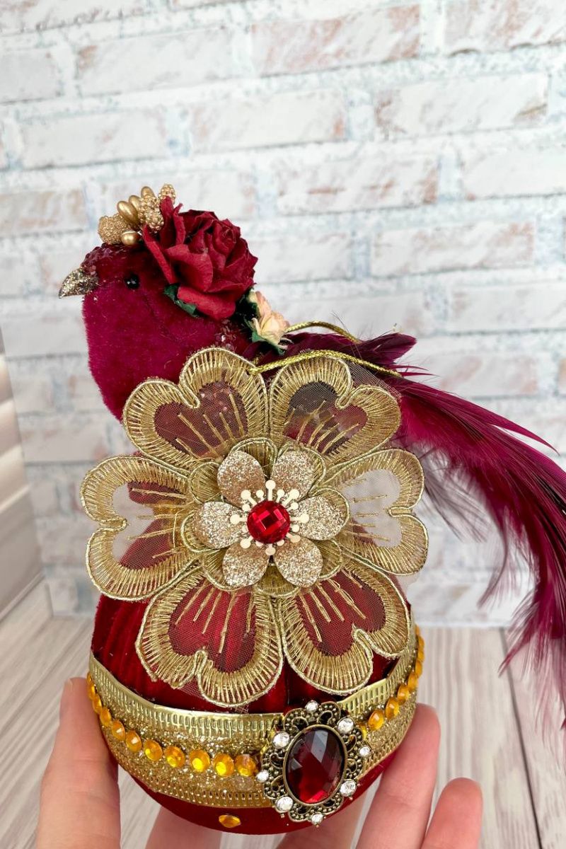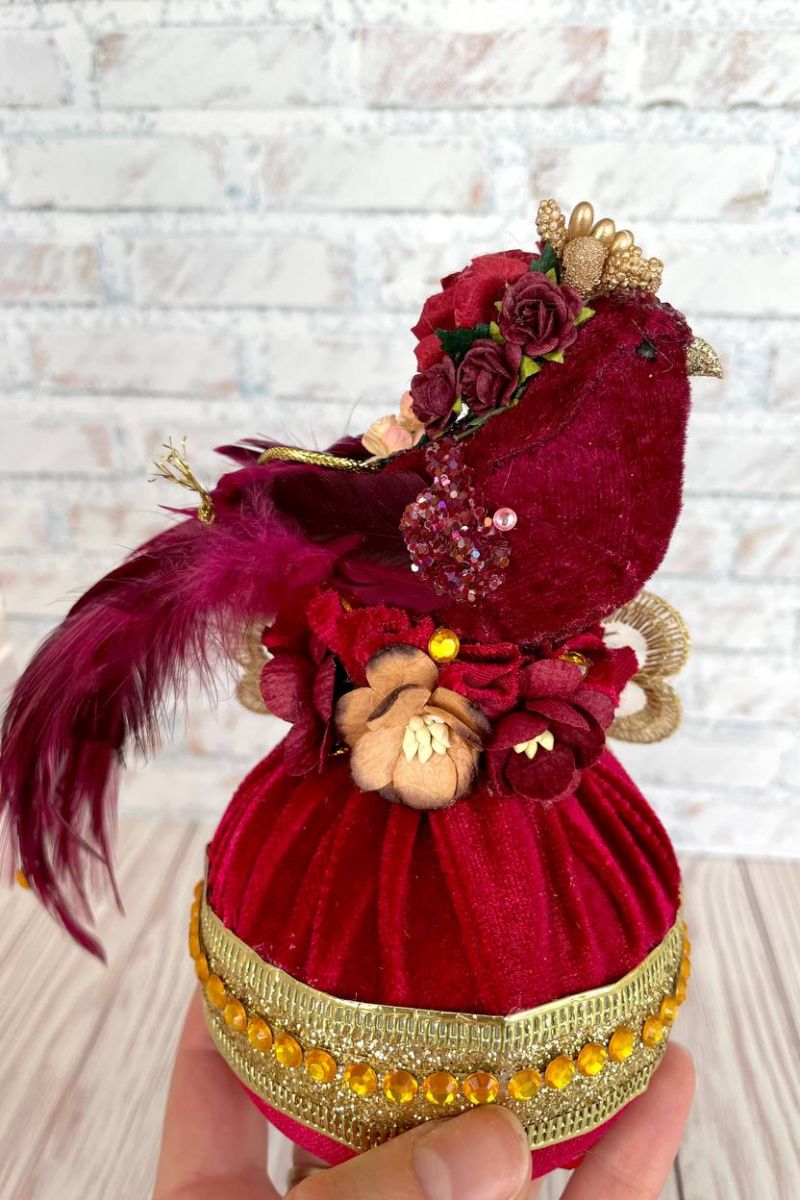 Оригинальная ёлочная игрушка ручной работы птичка на шаре.