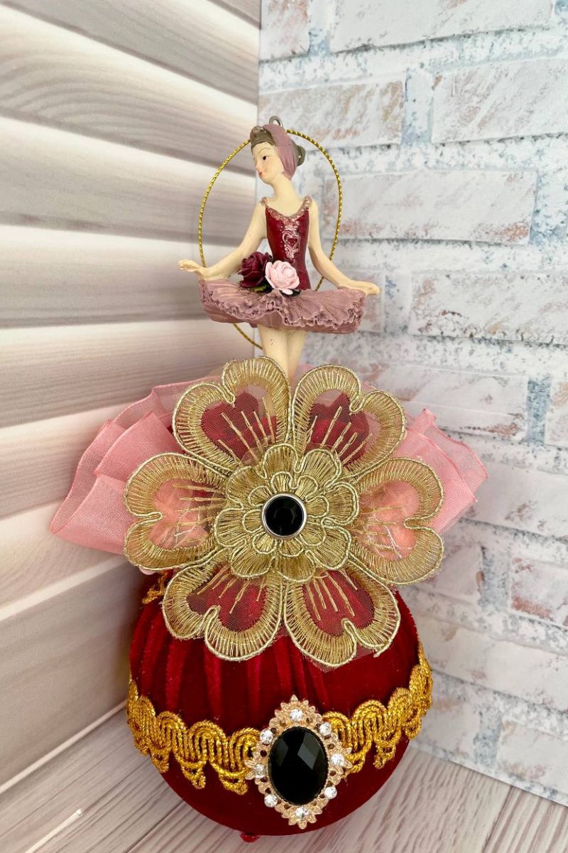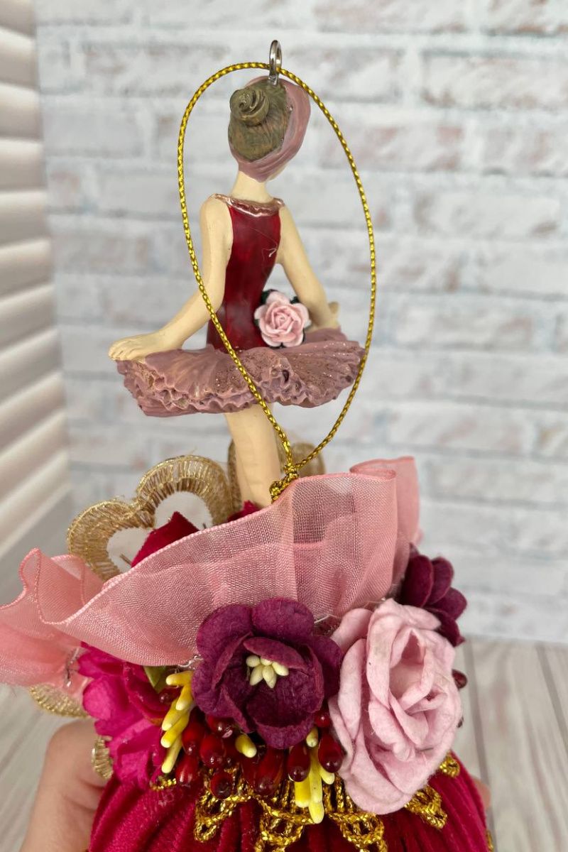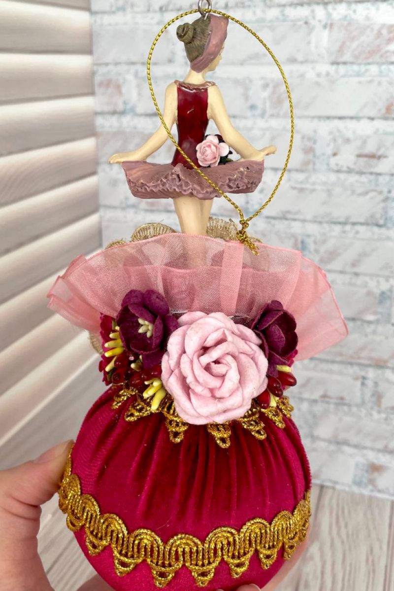 Оригинальная ёлочная игрушка ручной работы балерина на шаре.