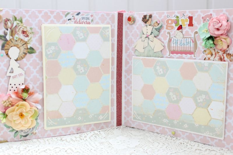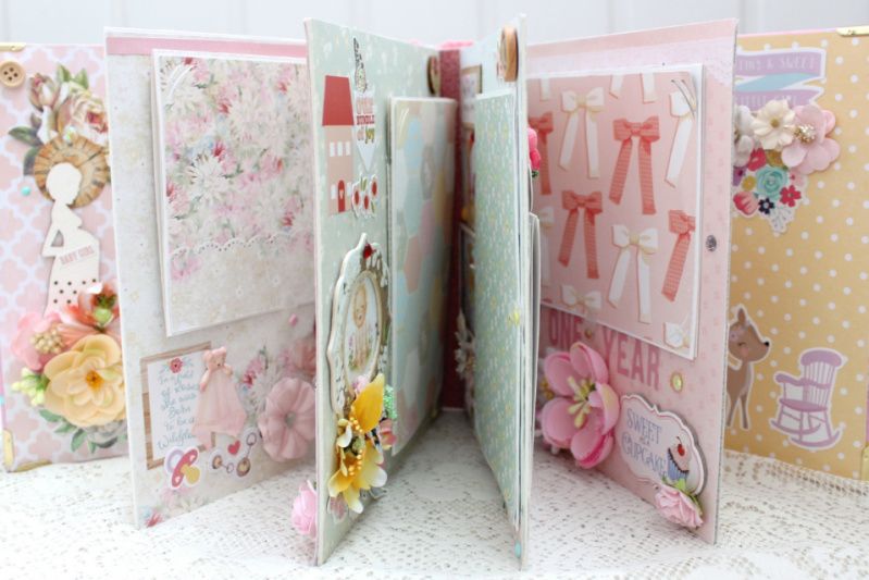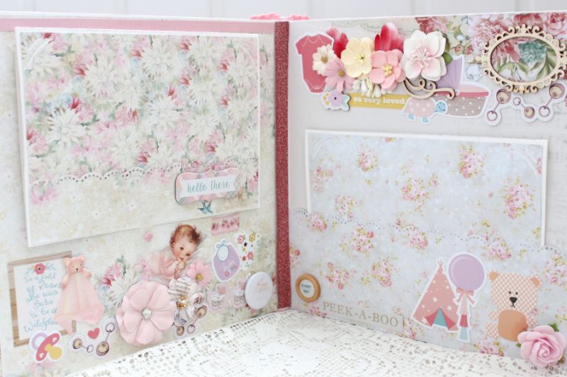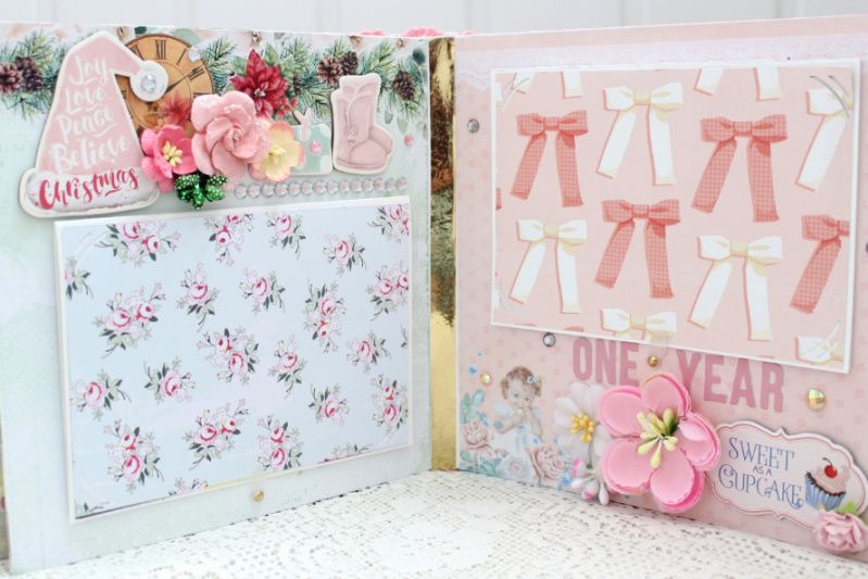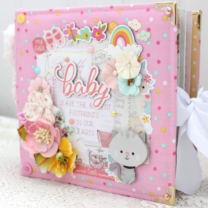 Фотоальбом ручной работы для новорожденной девочки с множеством цветочных композиций и различных украшений на каждой странице. . Формат альбома 20х20, внутри 10 декорированных страниц, рассчитан до 50 фотографий. Такой альбом может стать оригинальным подарком на рождение девочки, выписку , крестины или первый День Рождения. Альбом в наличии.