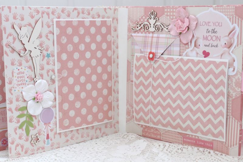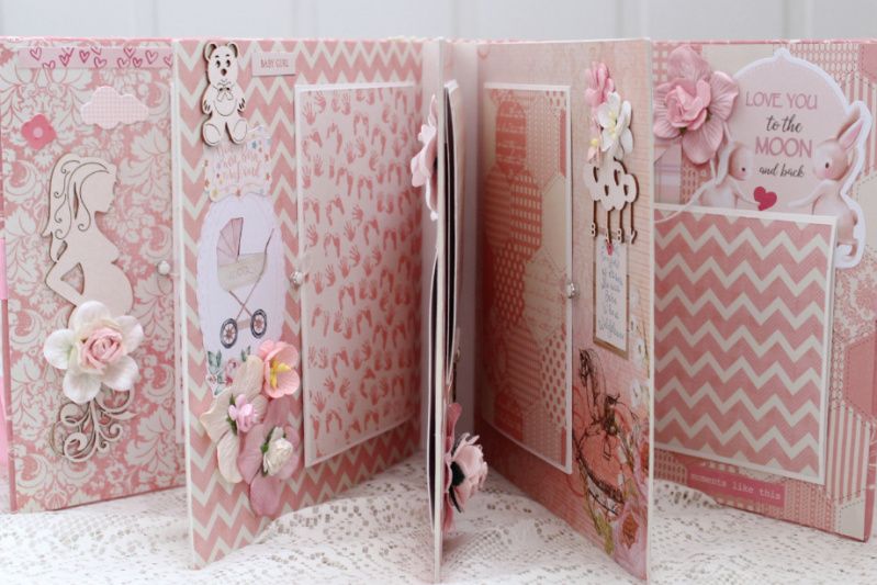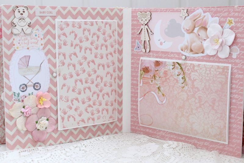 Альбом ручной работы для девочки с множеством различных украшений на каждой странице. Формат альбома 20х20, внутри 8 декорированных страниц, рассчитан до 40 фотографий. Такой альбом красиво сохранит самые теплые воспоминания в жизни вашей крохи, а также может стать оригинальным подарком на рождение , выписку, крестины или первый День Рождения.