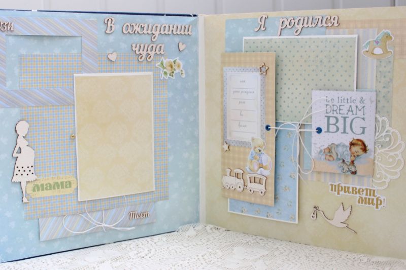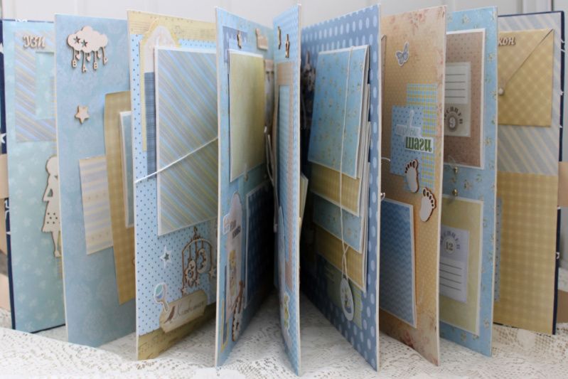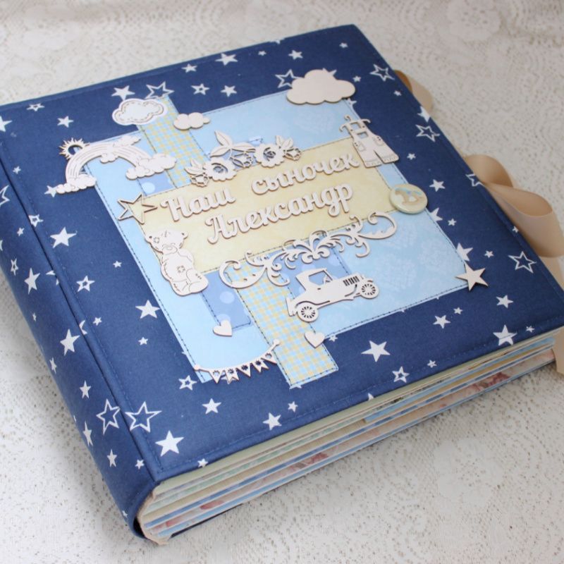 Огромный фотоальбом ручной работы для малыша, настоящая семейная реликвия. Формат альбома 30х30, толщина 10 см, внутри 16 декорированных тематических страниц, рассчитан до 155 фотографий. Альбом выполнен по темам: В ожидании чуда+ УЗИ+конверт для теста, Я родился+конверт для бирочки, Выписка, Моменты счастья, Счастливая семья, Первое купание, Волшебные сны, Я познаю мир, Наша радость, Ням-нямка,Мои игрушки, Улыбашка, Первый рисунок, Малыш, Я на прогулке, Мои первые друзья и подруги, Первые шаги, Фотографии и заметки 1-12 месяцев, Мой первый День Рождения, Конверты для локона и зубика, Таблицы роста и достижений ребенка.