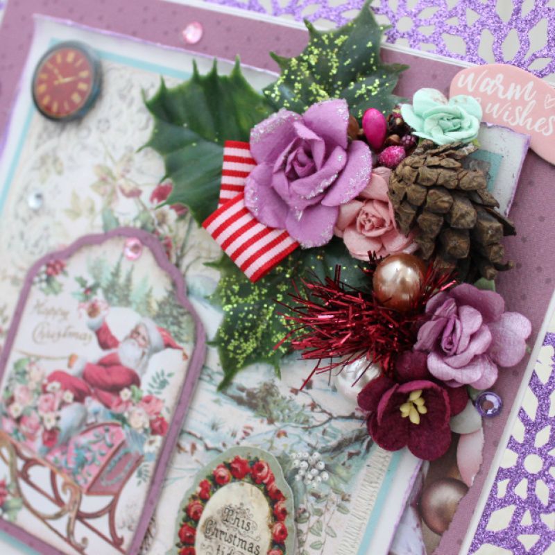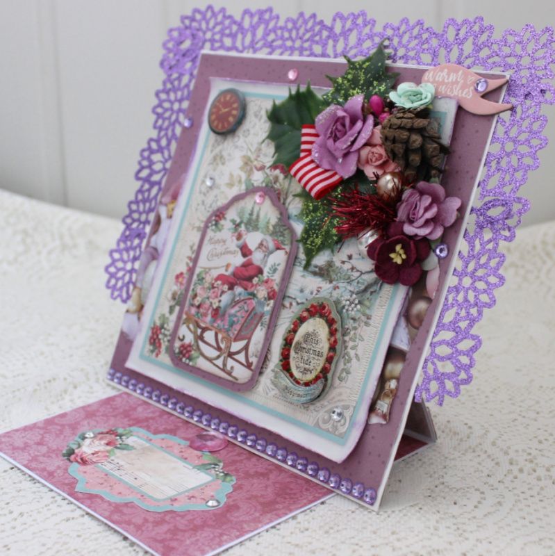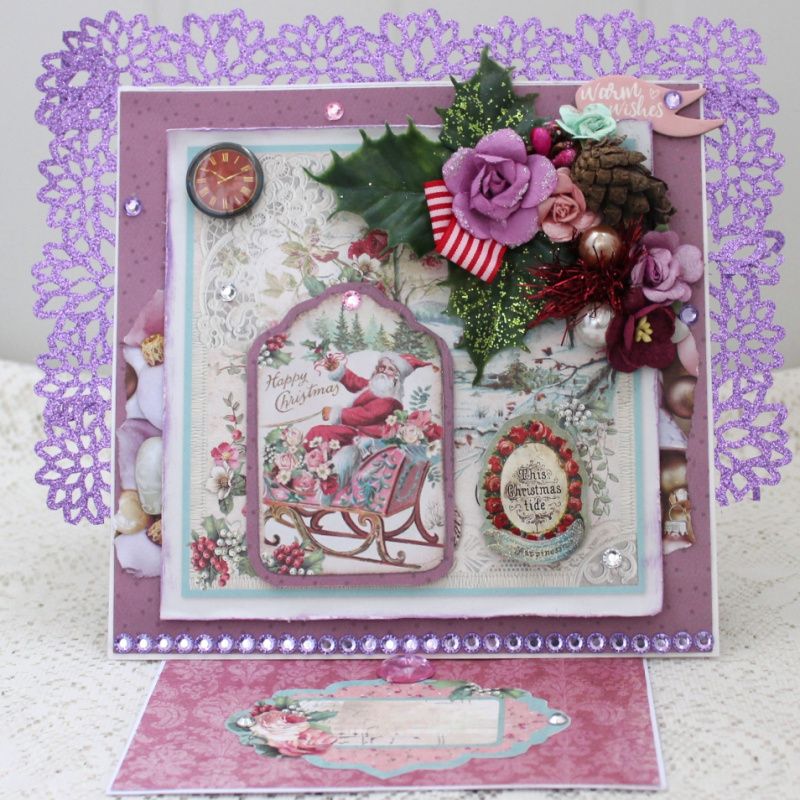 Большая раскладывающаяся новогодняя открытка ручной работы. Открытка декорирована объемной композицией и различными украшениями. Размер открытки 20х22. В наличии.