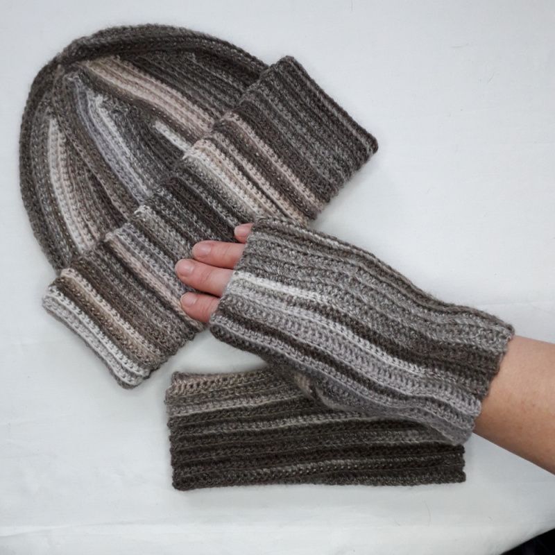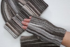 Комплект: Шапка и митенки вязаные крючком. Шапку можно носить с напуском или с отворотом. Стиль Унисекс. Связана из итальянской пряжи. Изделие мягкое и приятное на ощупь.