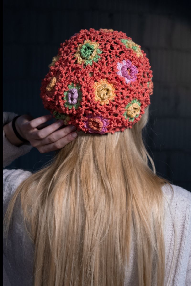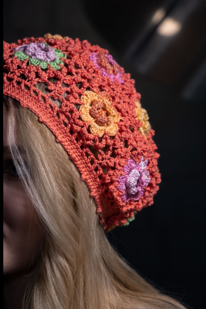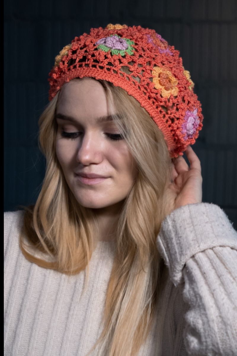 Яркий летний берет, связан крючком, прекрасно держит форму.