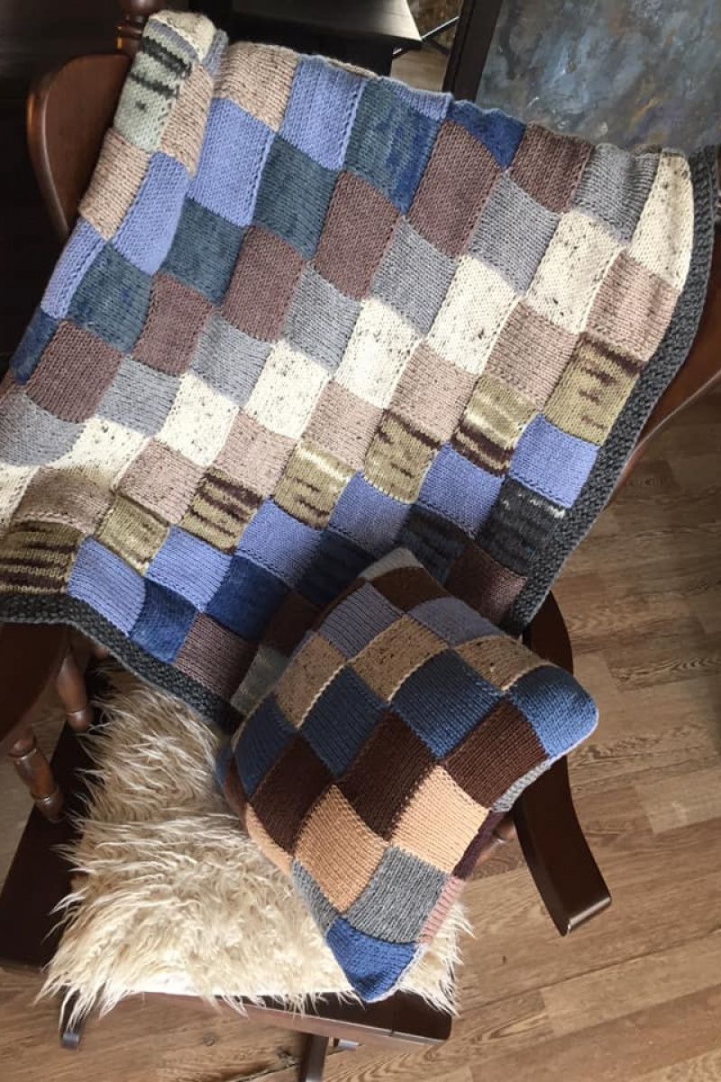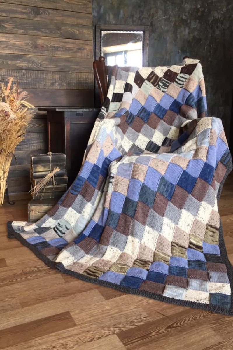 Вязаный плед в технике энтерлак. Связан из качественной пряжи -твид,шерсть,полушерсть, акрил, вискоза.