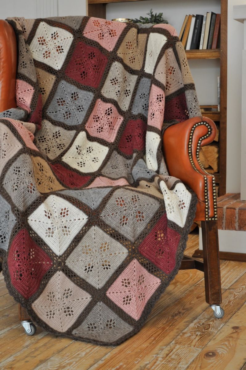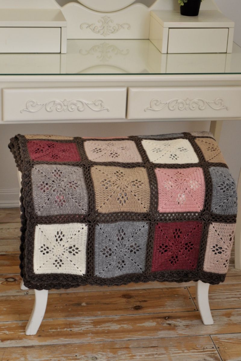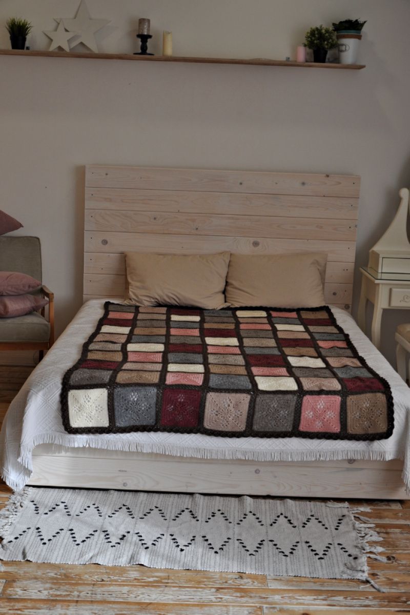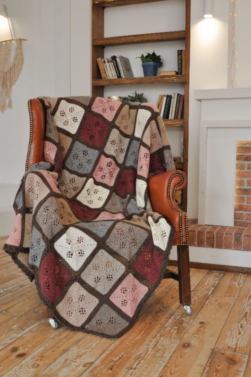 Вязаный плед в технике печворк. Связан из качественных ниток -твид,шерсть,полушерсть, вискоза.