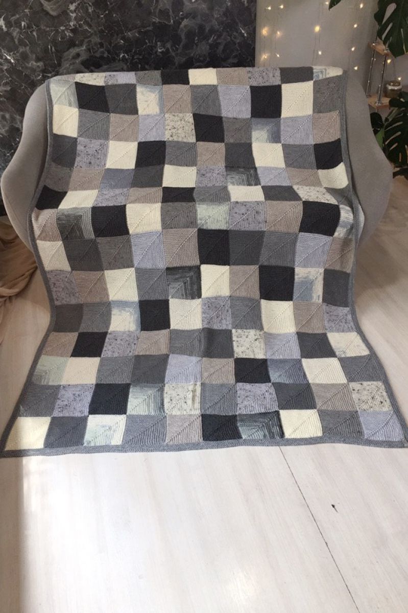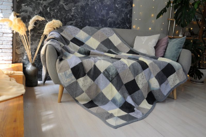 Плед выполнен в технике печворк. Скандинавский стиль, уютный хьюгге.