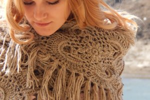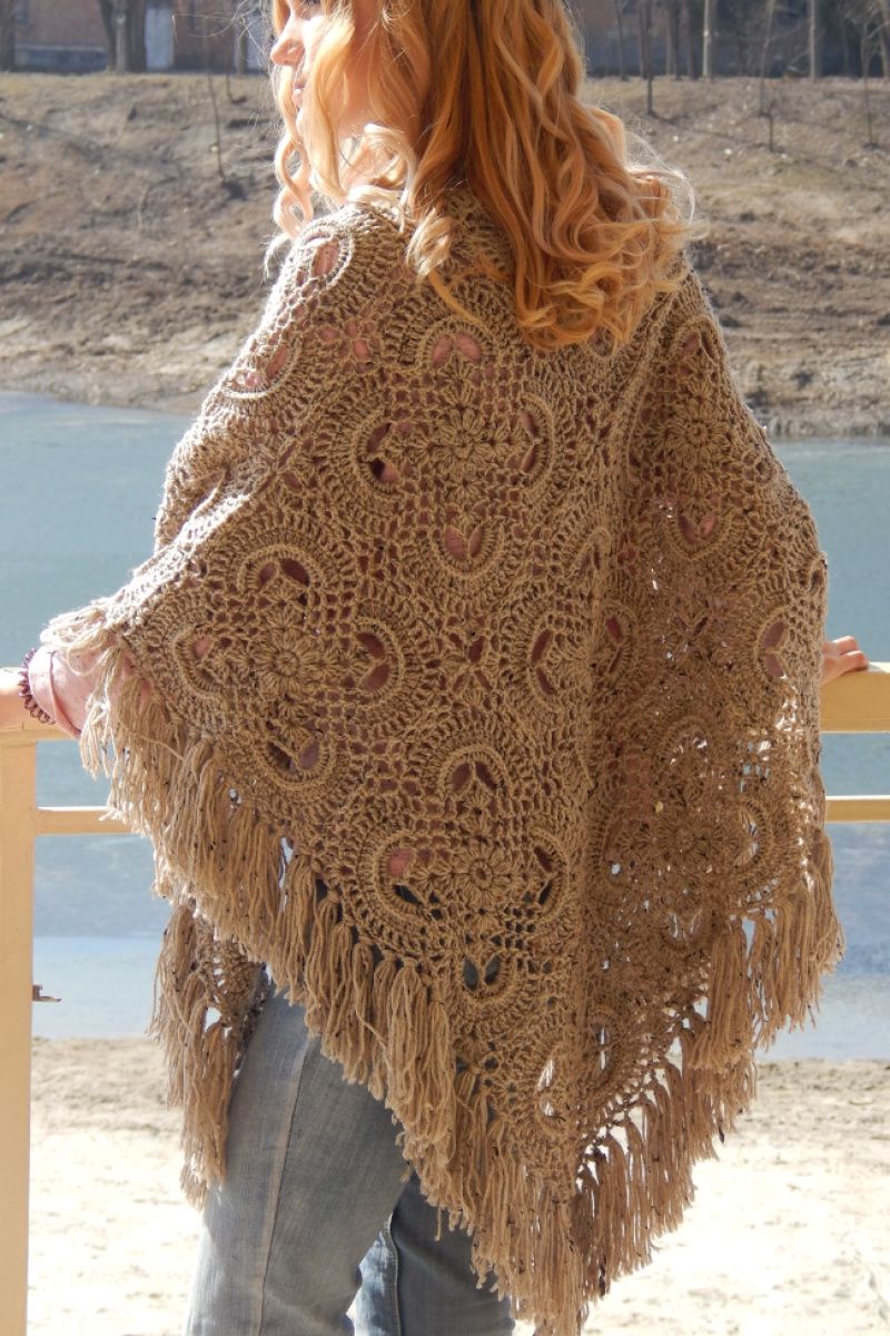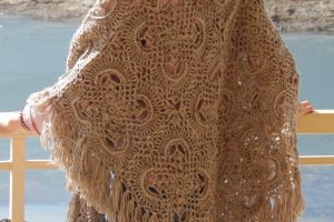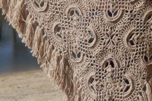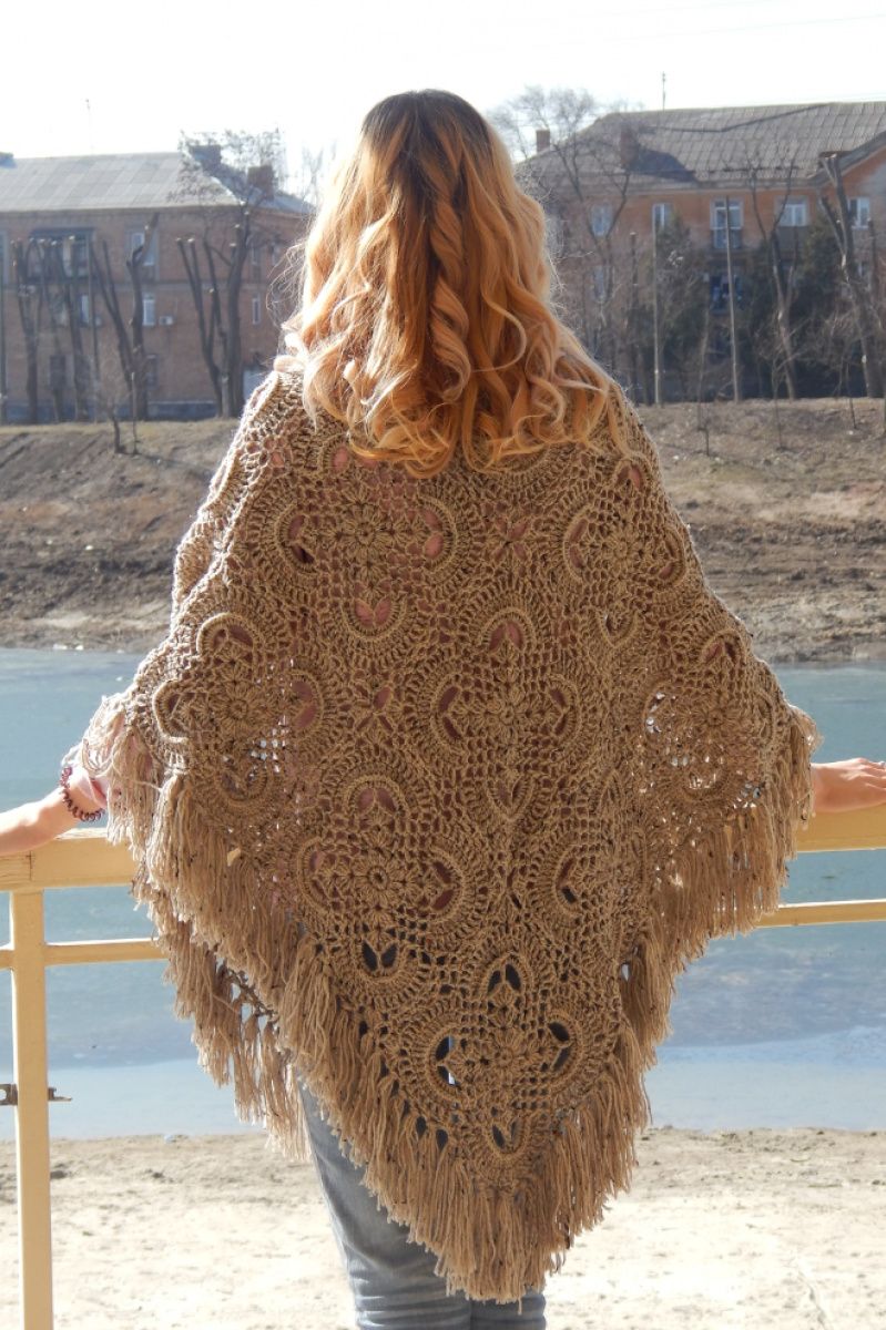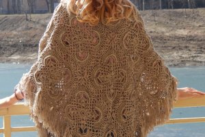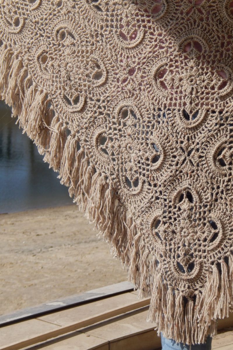 Шаль выполнена крючком из мягкой твидовой шерсти. Мягкая удобная, замечательно драпируется. Шелковистая фактура дает винтажный налет английской классики. Подходит под любой предмет гардероба. Бежевый оттенок хорошо вписывается любую цветовую гамму.